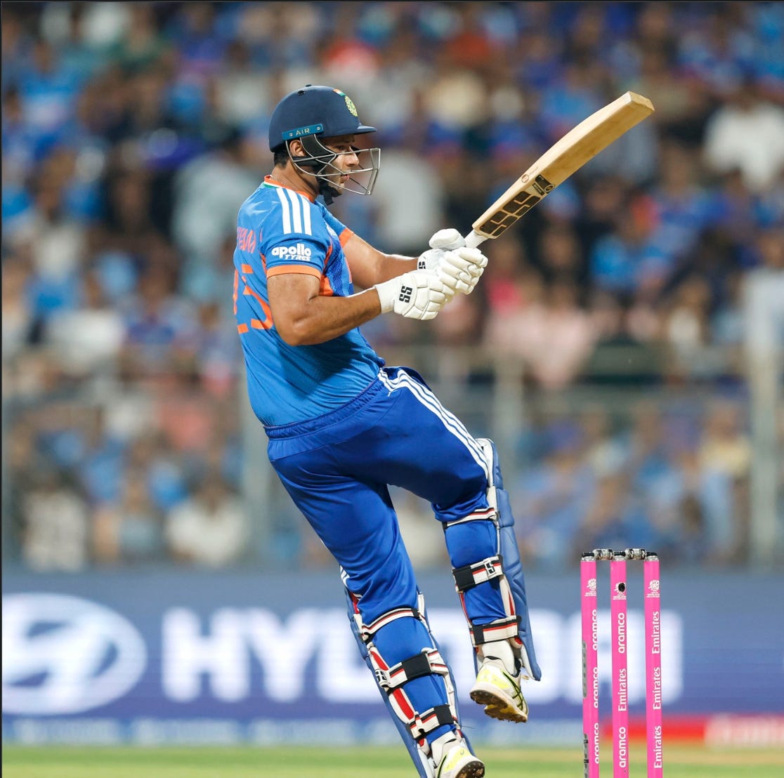 Will Jacks finally got Samson in the 14th over, but Dube stuck around. And stuck around. And stuck around, until a stupid run out in the 18th over. By then, ENG were well into their death over quota and had given up on Dawson. Dube’s 8-over stint forced ENG to ignore their 5th bowler – who’s actually taken 3 wickets at 5 RPO during the death in this World Cup.