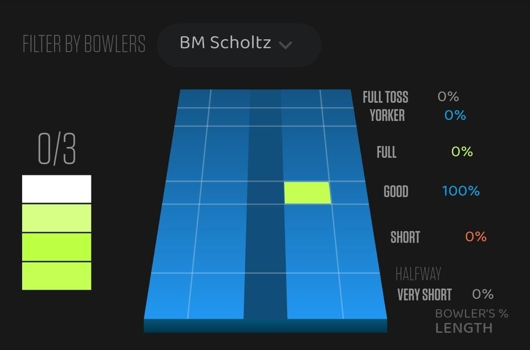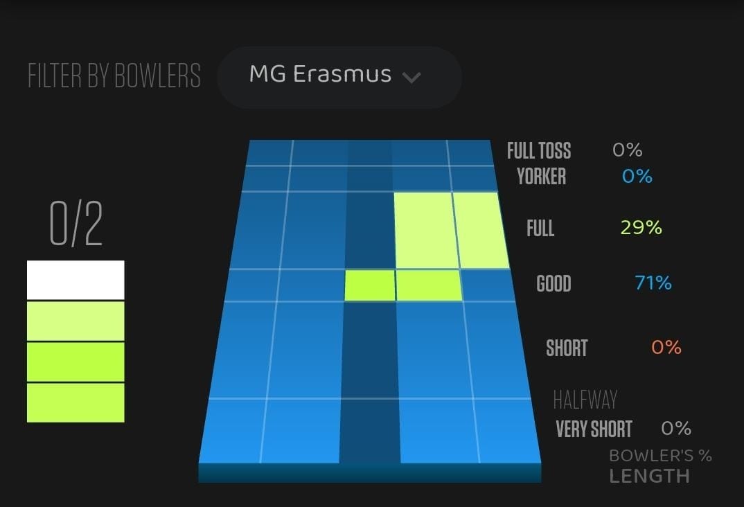 Eight of those deliveries were bowled on a good length, and when he finally tried to take Erasmus down by using his feet, it proved to be unsuccessful.