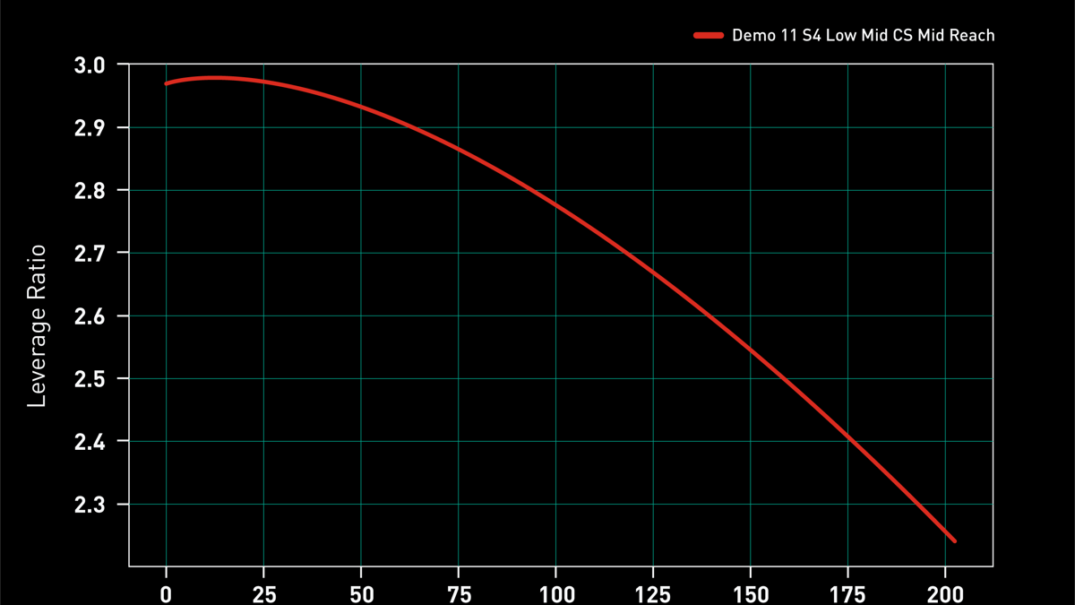 The leverage curve sits at a 24% progression, which is the sweet spot for that “bottomless” feel without losing the mid-stroke support needed to pump for speed.