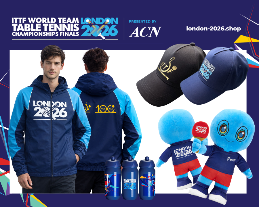 You can own a little piece of history thanks to our range of centenary ITTF World Team Table Tennis Championships Finals London 2026 Presented by ACN clothing and memorabilia.