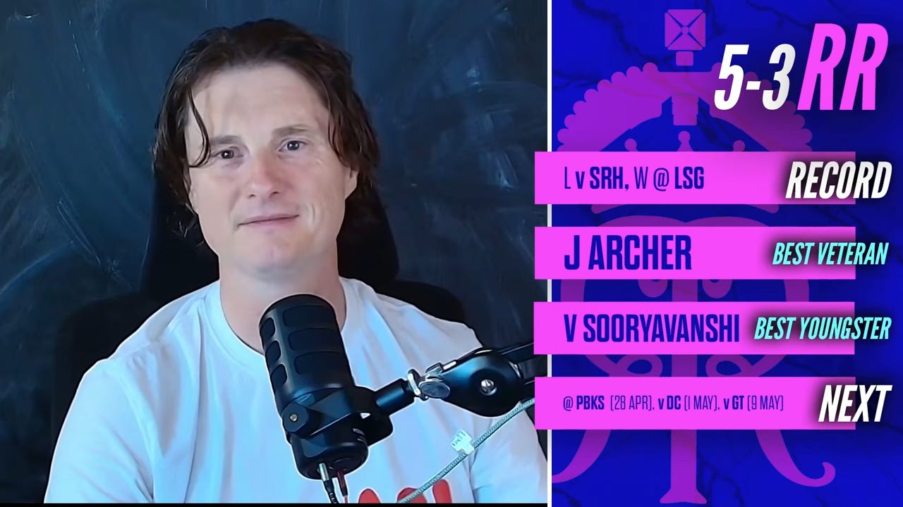 Last week: Vaibhav Sooryavanshi scored a 36-ball hundred against SRH, but once he was out, RR only added 58 runs off the last 37 deliveries of the innings. They then dropped Abhishek Sharma twice in the powerplay. They fought their way from 110/6 to 159/6 versus Lucknow, and then took three powerplay wickets.