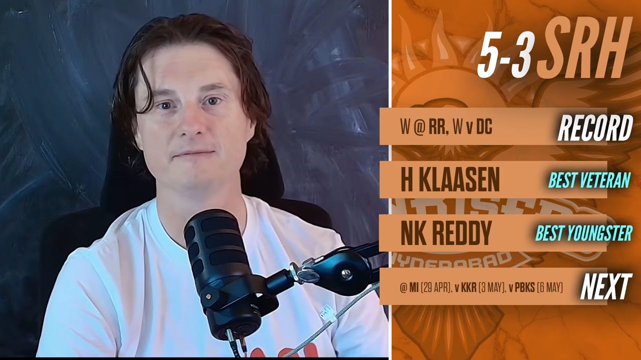 Last week: SRH chased down 228 comfortably against RR, though if the hosts held on to their chances we could have had an interesting game. They kind of batted Delhi out of the game at home. Pat Cummins started off really well after a long layoff.