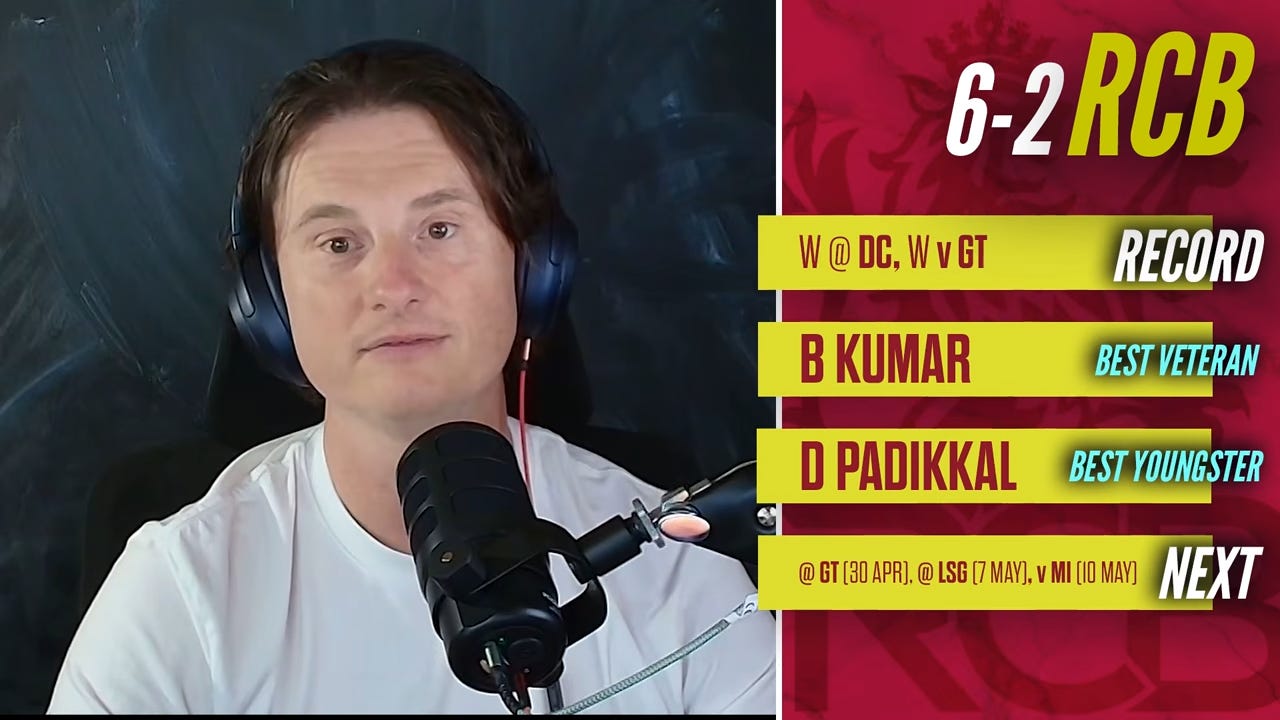 Road ahead: RCB would be licking their lips after looking at their schedule for the rest of the tournament. GT will obviously be a challenge, but Lucknow are winless at home. They play their home game versus MI at Raipur.