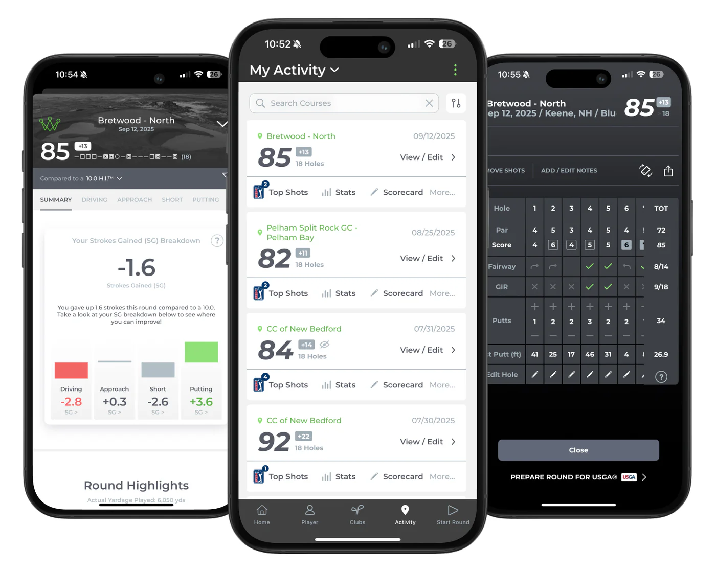 And then there’s the Activity tab, where every round you’ve played lives, shot by shot — available forever. As someone who plays a lot of bucket list courses, this is one of my favorite features.