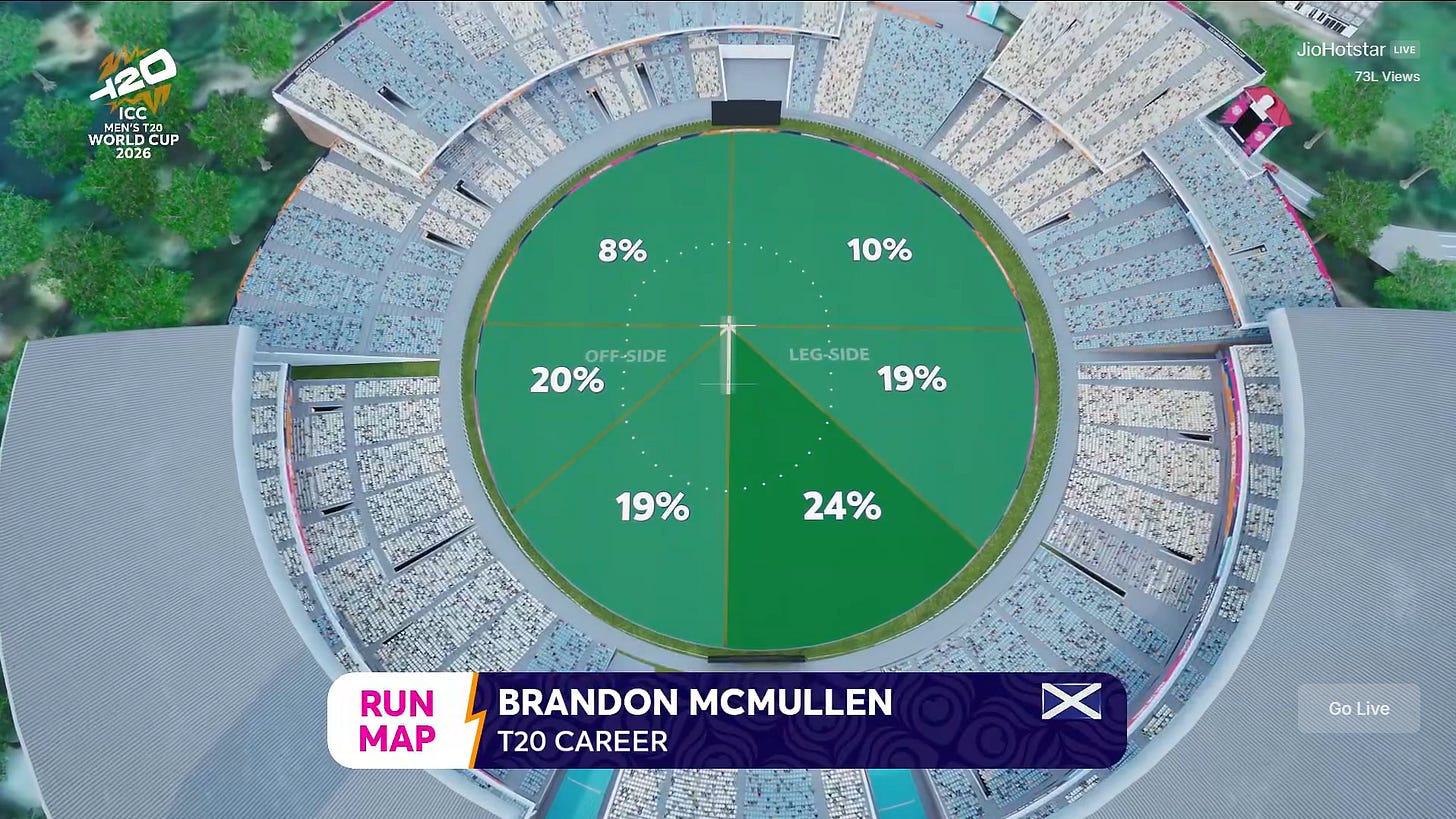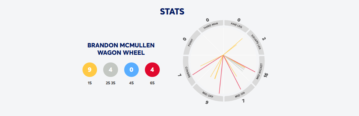 McMullen has four clear scoring zones; he is incredible down the ground and doesn’t really score too many behind the wicket on either side.
