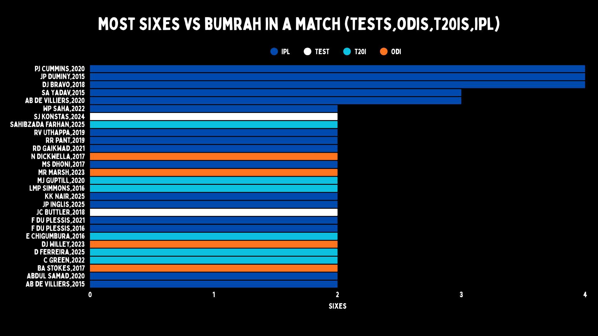 While Bumrah is undoubtedly one of the greatest bowlers in the IPL, there are moments when batters manage to hit sixes off him in the league.