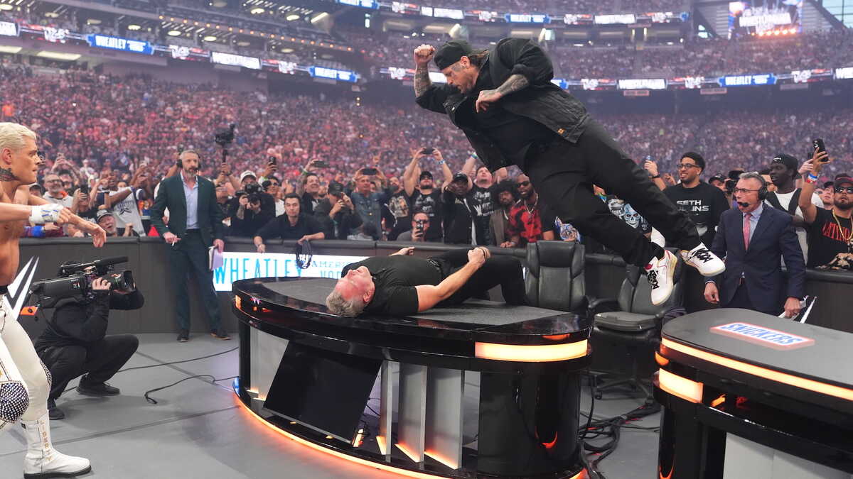 The celebrity involvement for the feud culminated in Jelly Roll putting McAfee through an announce table with an elbow drop, a moment the musician joked he needed a framed picture of.
