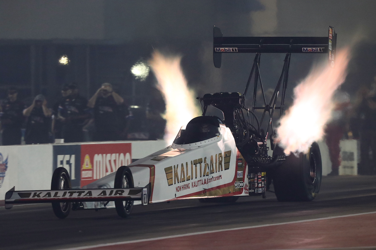 Leah Pruett is currently second with her run of 3.700 at 333.82, and reigning world champion and points leader Doug Kalitta is third after going 3.711 at 334.73.