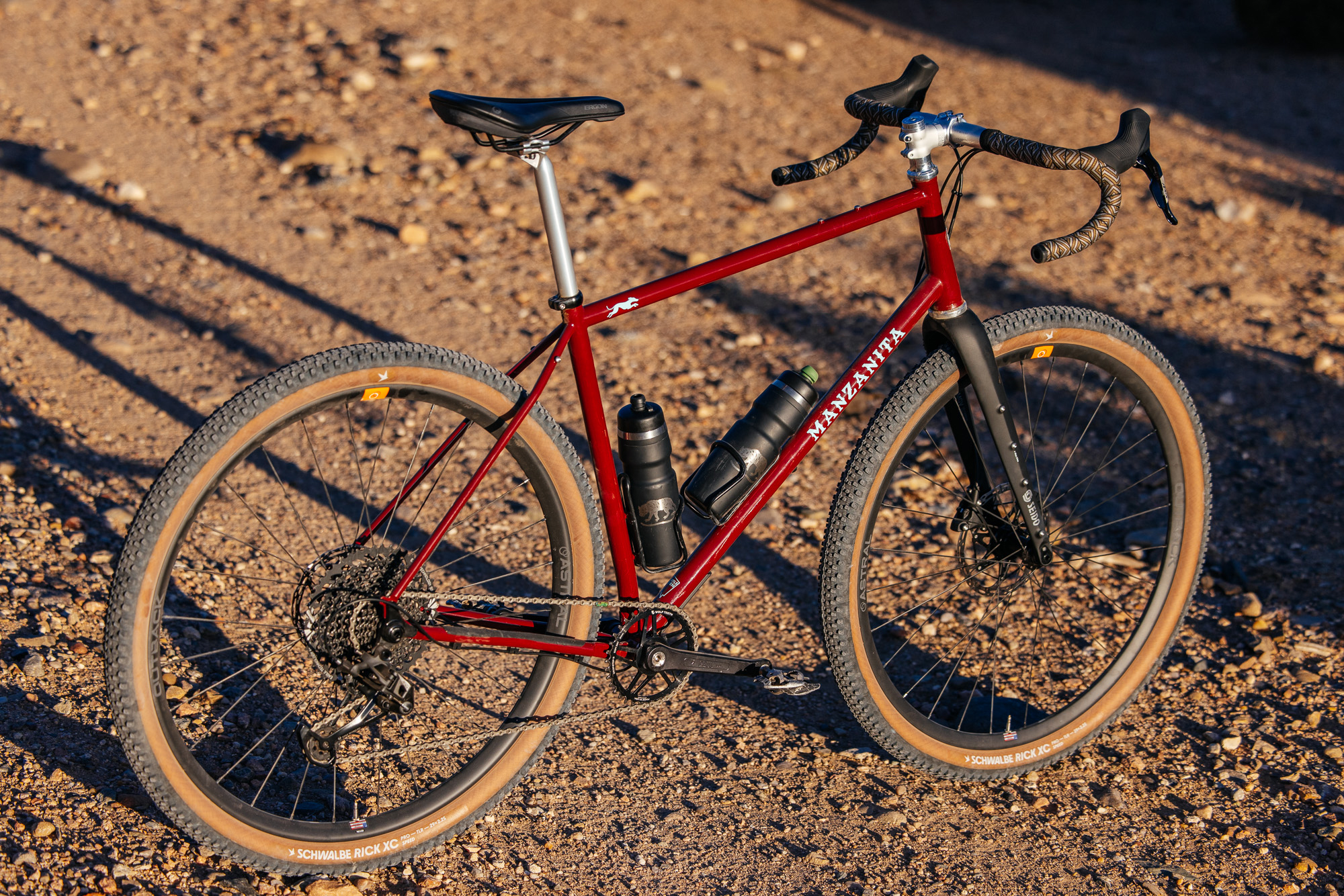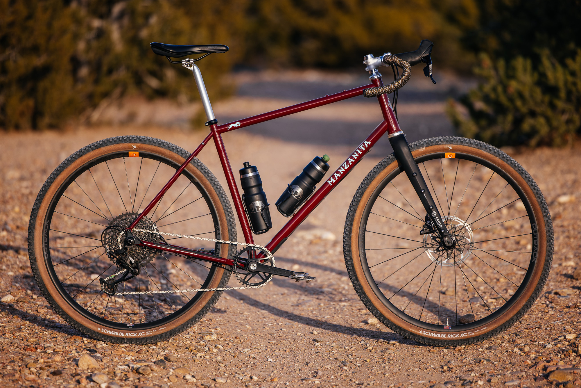 The Manzanita Cycles Whippet is a gravel bike with a steel frame, carbon fork, and clearance for a 2.25″ tire, but there’s a lot more going on with this Nevada-welded bike. Read on for John’s in-depth look at this sleek, modern steel machine, with a perspective on how the same frame can be built for adventure riding or gravel racing…