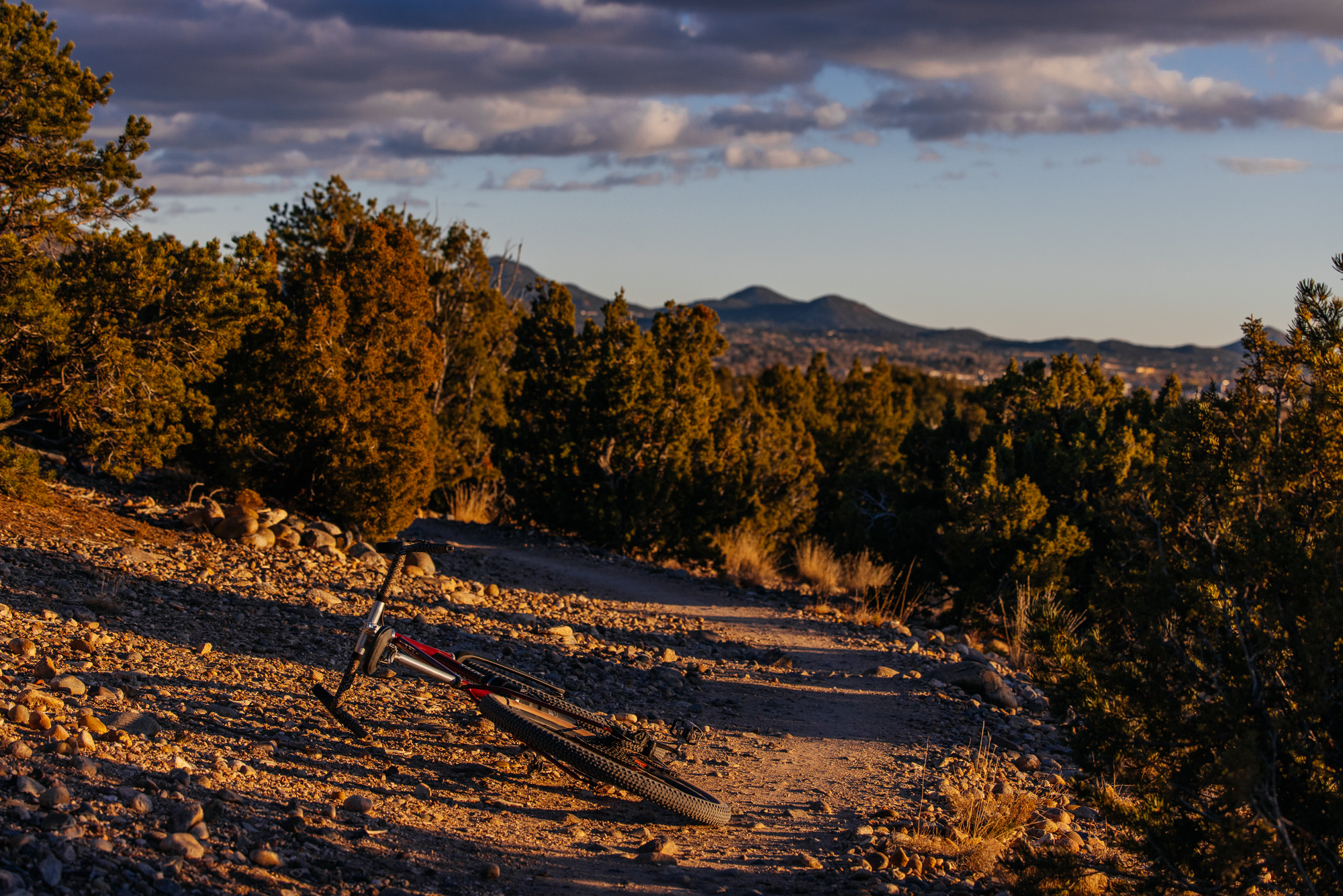 Pedaling across town to our Caja Del Rio, a volcanic tableland just west of town here in Santa Fe, there’s a mix of bike path and country road before you hit the dirt. Unlike my Pacheco climbing experience, which was all climbing (over 18 miles and 5500′ out the gate, in fact!), this ride barely breaks the 1,000′ per 10-mile ratio.