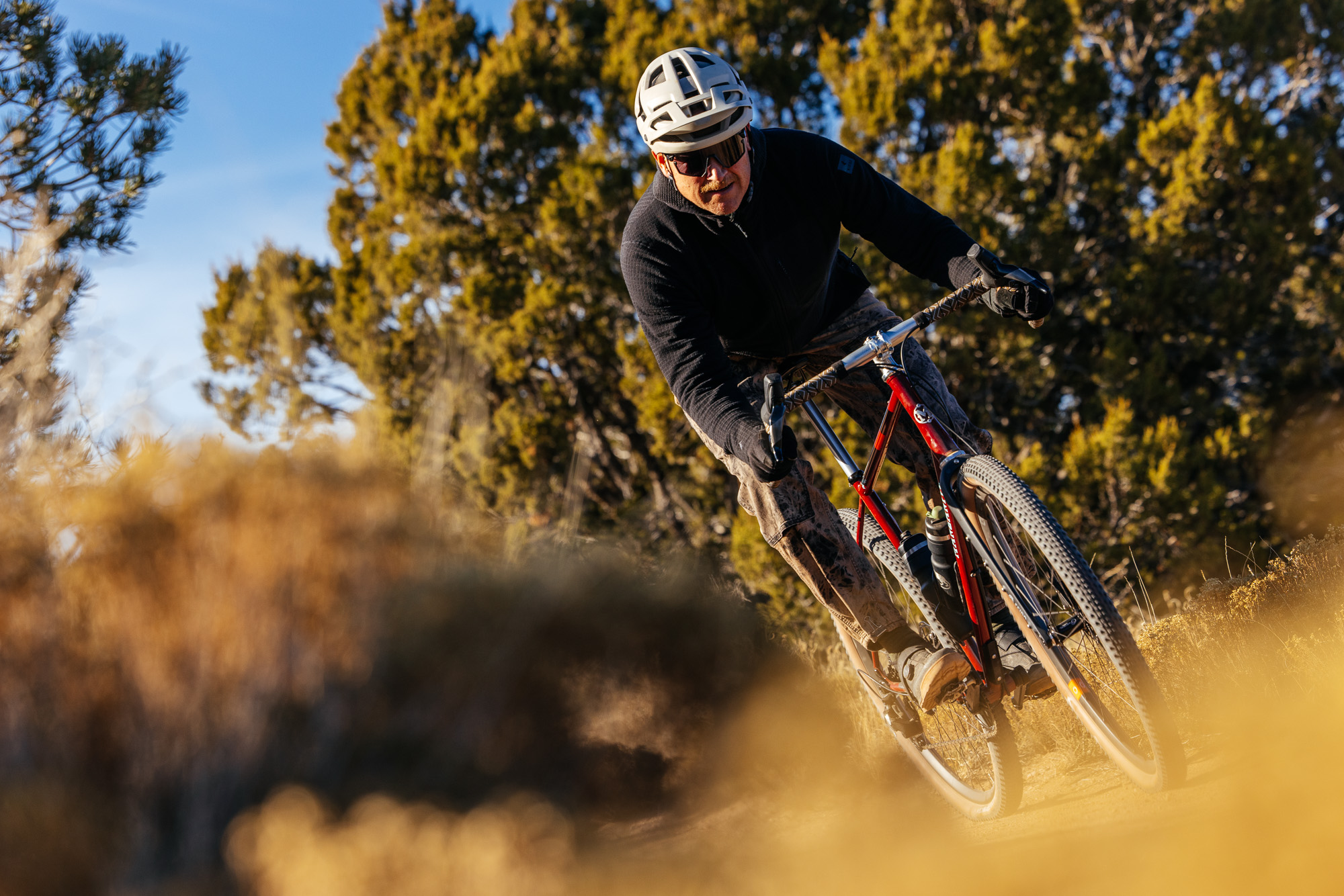 I came around to favoring big tires a lot later than John, which is pretty typical, honestly. When the Race Metal series started, I still believed semi-slick 40 mm tires were the answer to every gravel race. John tried more than once to hand me a bike with full-on monster truck tires, and I kept saying “no thanks.” He even offered me his Ponderosa months before I was willing to admit that maybe, just maybe, he was onto something.