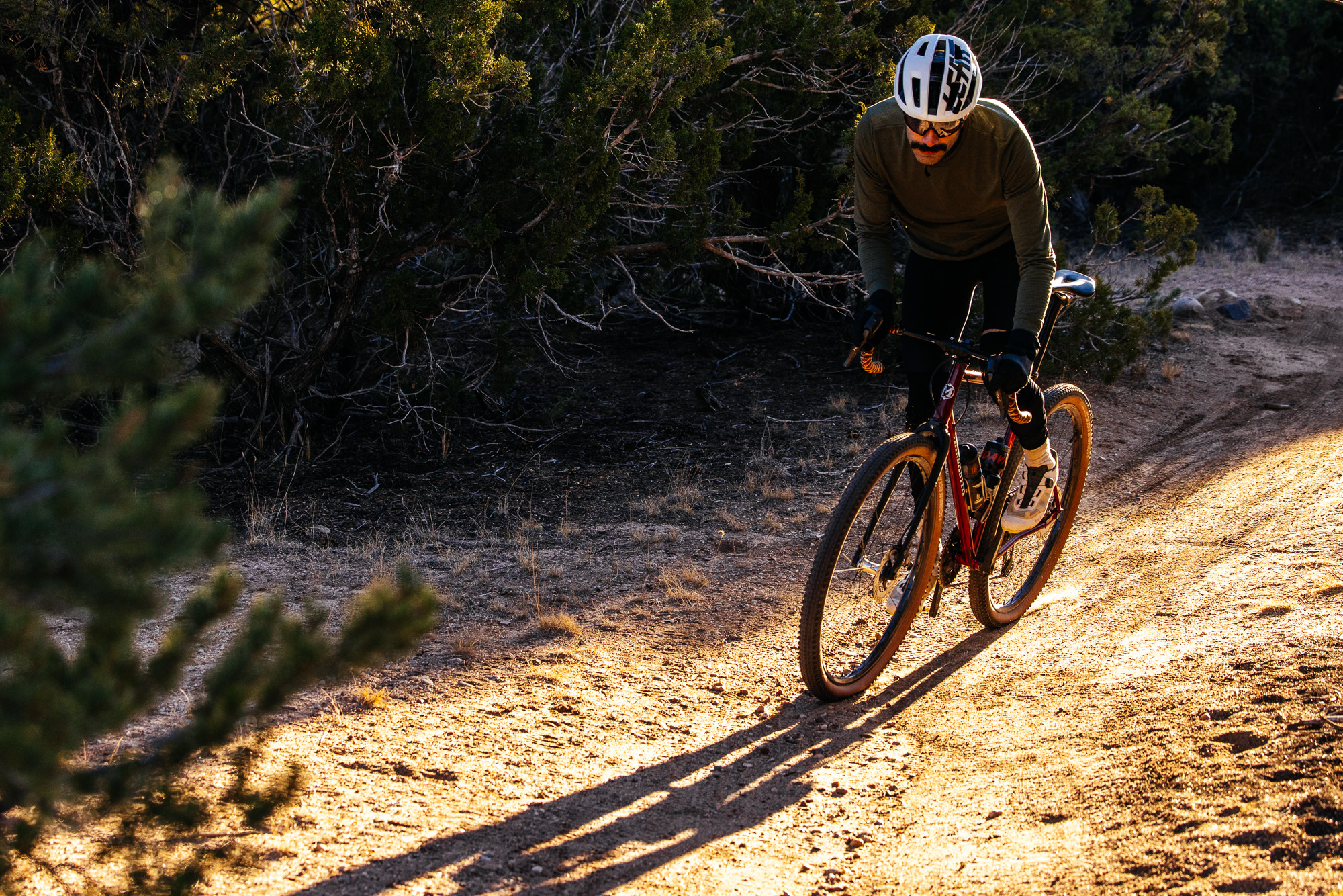 For me, a gravel bike is a bike I use to casually pedal doubletrack or XC singletrack on, where I’d have to pedal 10 miles of mixed-terrain surfaces to reach my desired riding locale. These routes might not necessitate suspension and would benefit from drop bars for better control and mashing out miles.