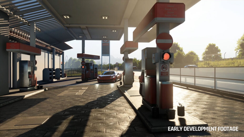 The free roam will include points of interest, special courses, a navigation system and interactive locations like gas stations, car rentals, car dealerships, hotels, restaurants and other companies that match with the real counterparts as well as AI traffic and other game modes that, this time, we’ll unveil when they will fit 1:1 in the game. So there will absolutely be a single-player mode for both the sim-racing part and free roam.