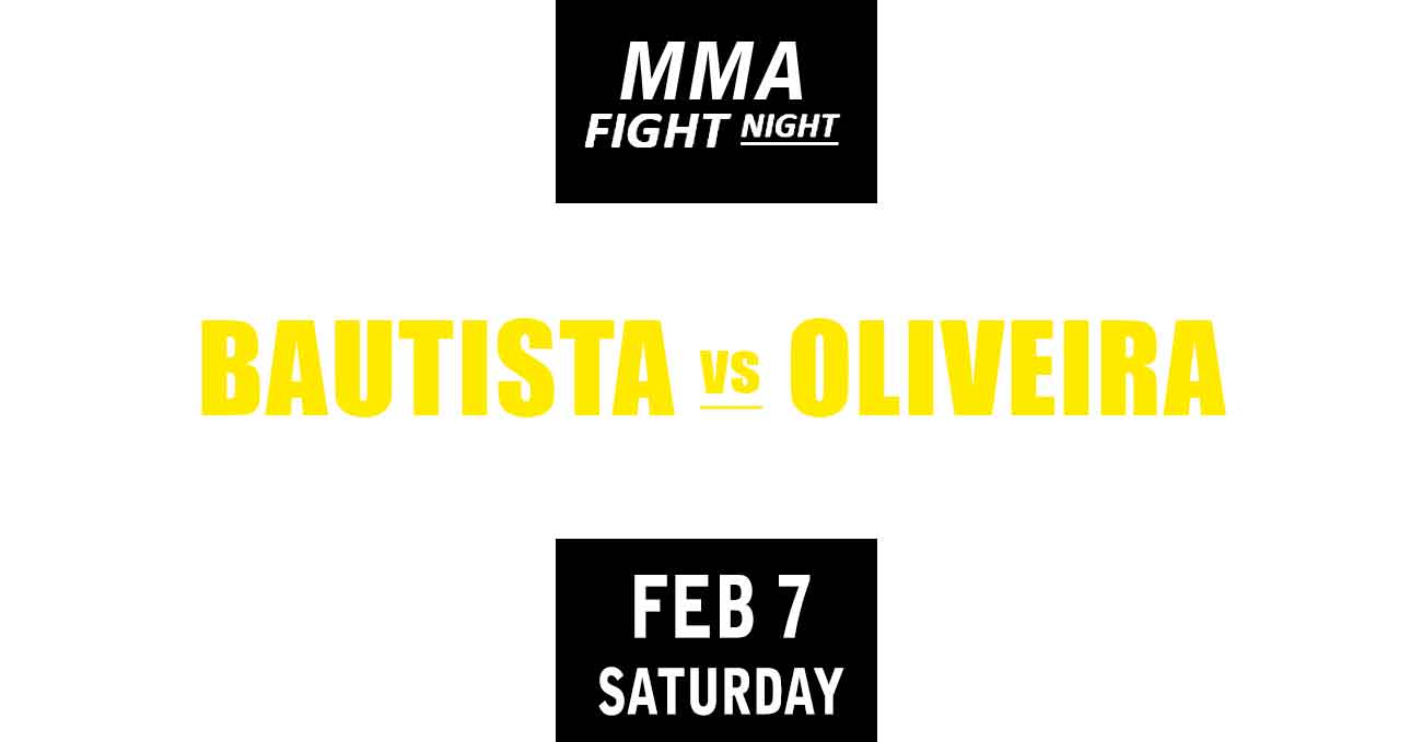 Oliveira vs Bautista is scheduled to take place Saturday, February 7th, at the Meta Apex in Las Vegas (Nevada, United States), in a 5-round bantamweight (135 lbs, 61 kg) bout; it is the main event of UFC Vegas 113 (also known as UFC Fight Night 266) . Watch the video and rate this fight!