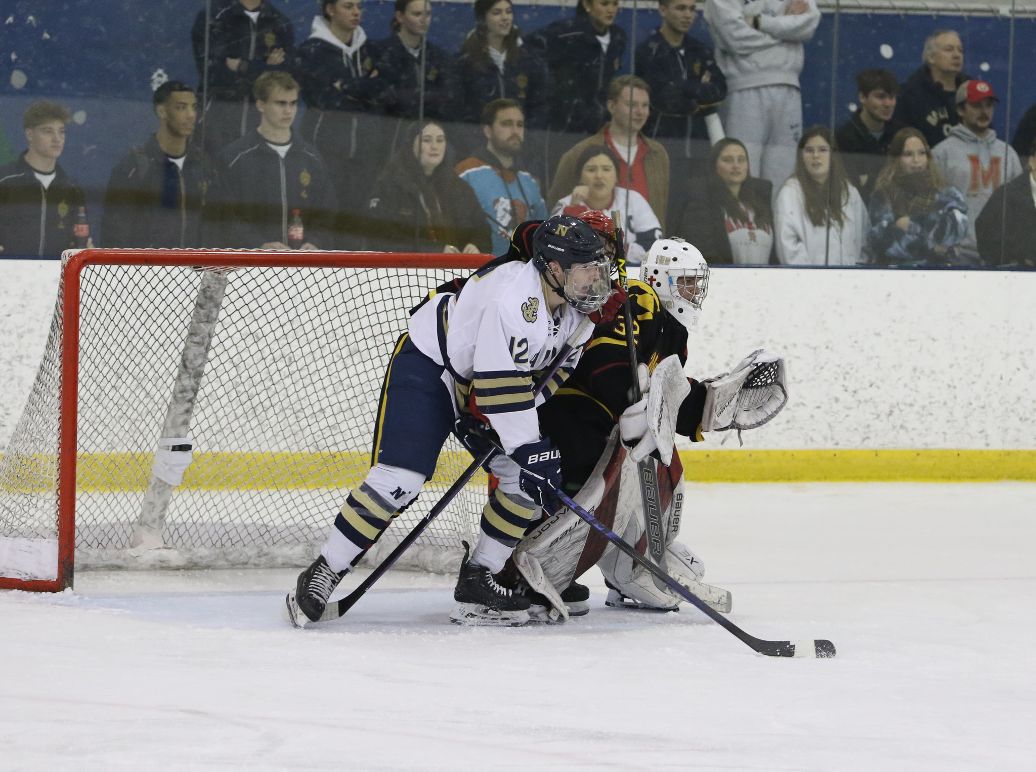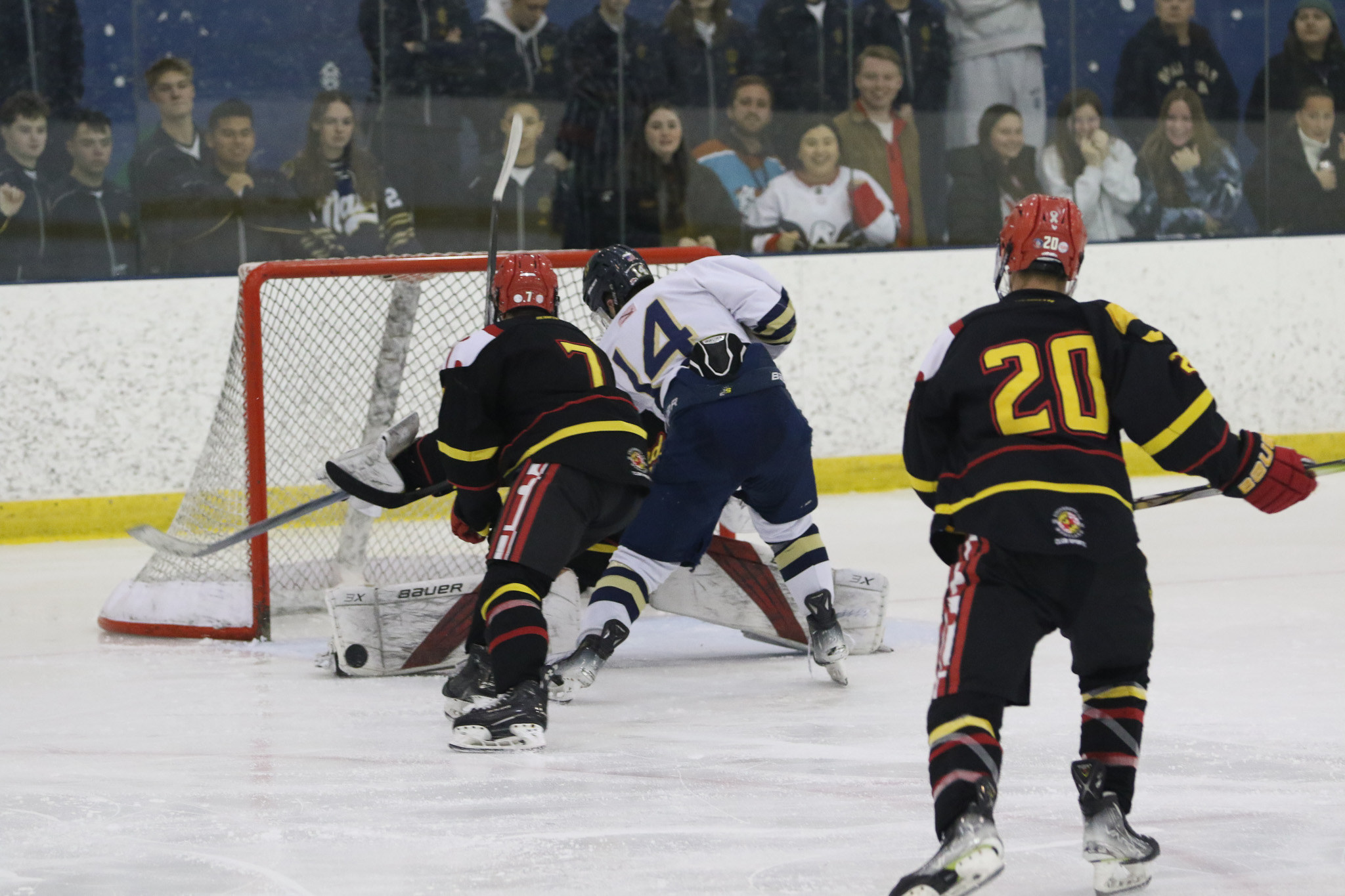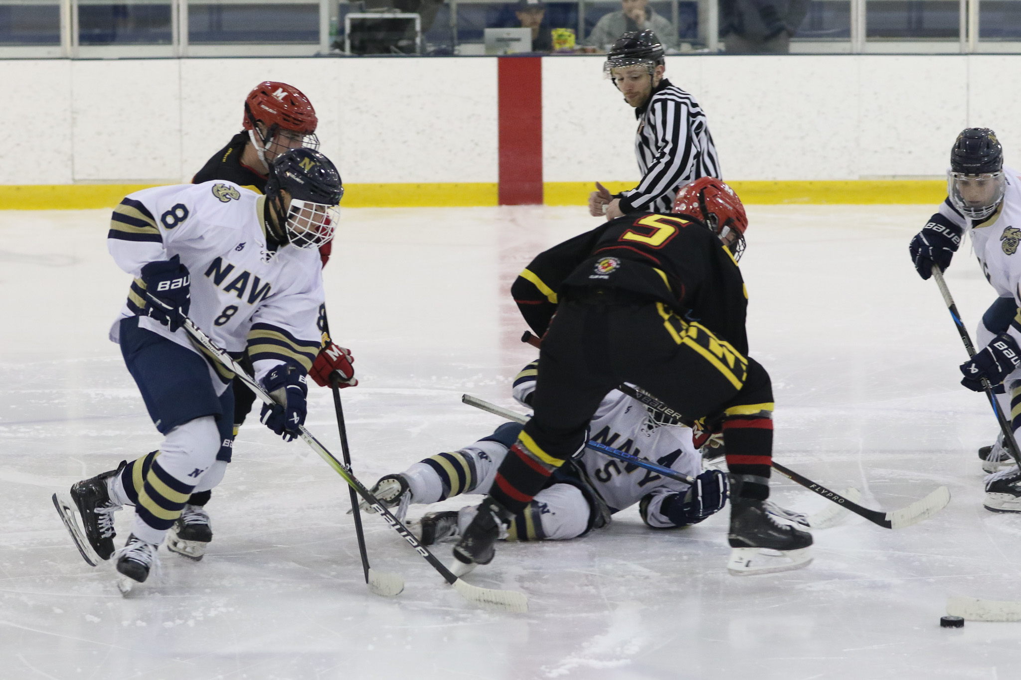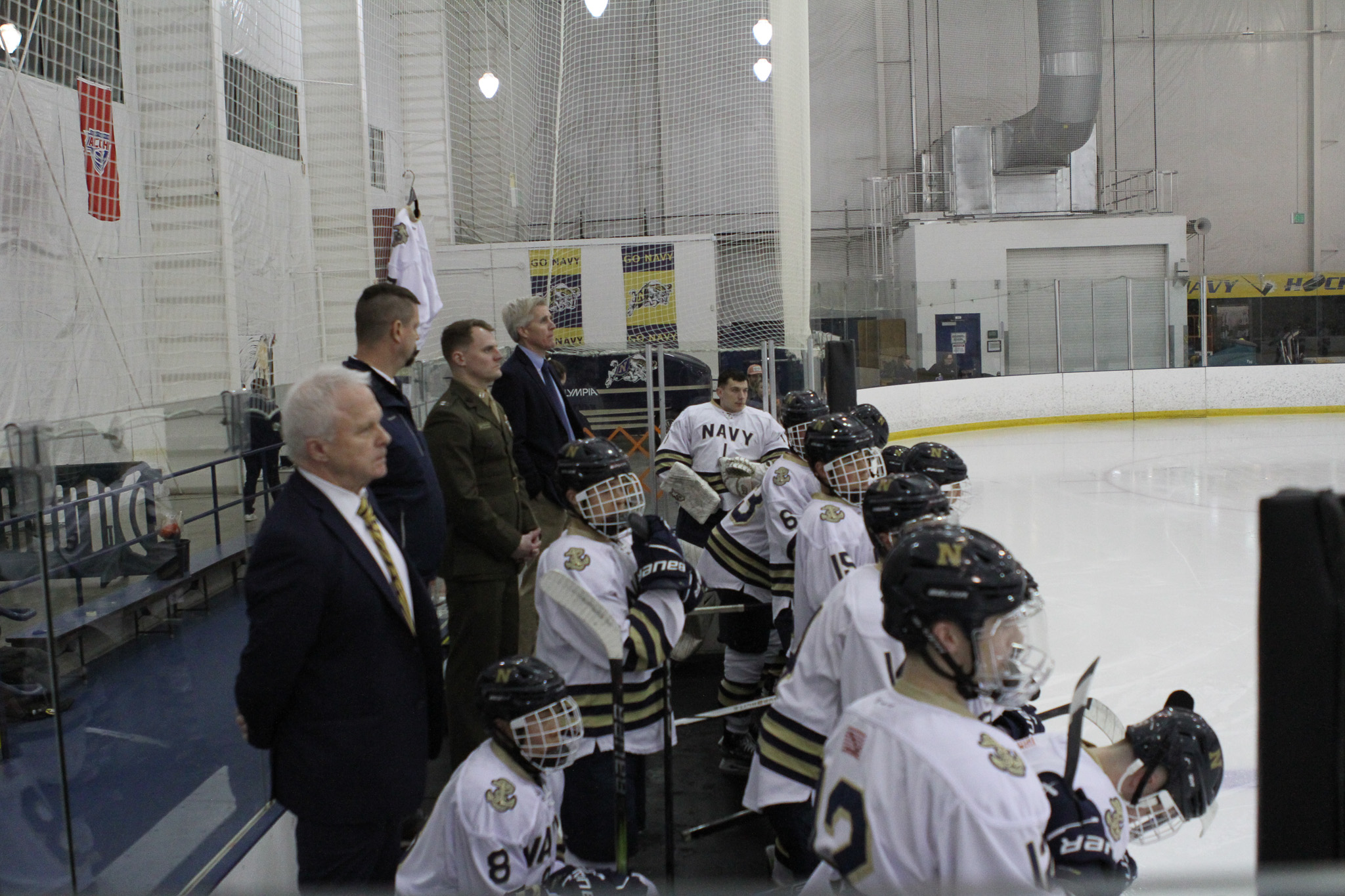 The Naval Academy pep band and packed house brought excitement and energy to the second game of the evening. Maryland got on the board first, at 15:52 in the opening period on a goal from Thomas Pilkington. Michael Shraibman provided the assist on the Pilkington goal. Just over two minutes later, at 17:34, James Botti would extend the lead with an assist from Travis Duchene. Rounding out the trio of goals from Maryland would be Colin Doherty at 19:26 with the helper coming from James Romps.