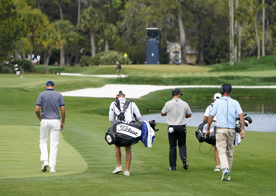 Ludvig Aberg and Xander Schauffele walk down the first fairway during the third round of THE PLAYERS Championship. March 14, 2026; Ponte Vedra Beach, Florida. Credit: Jeff Romance-Imagn Images