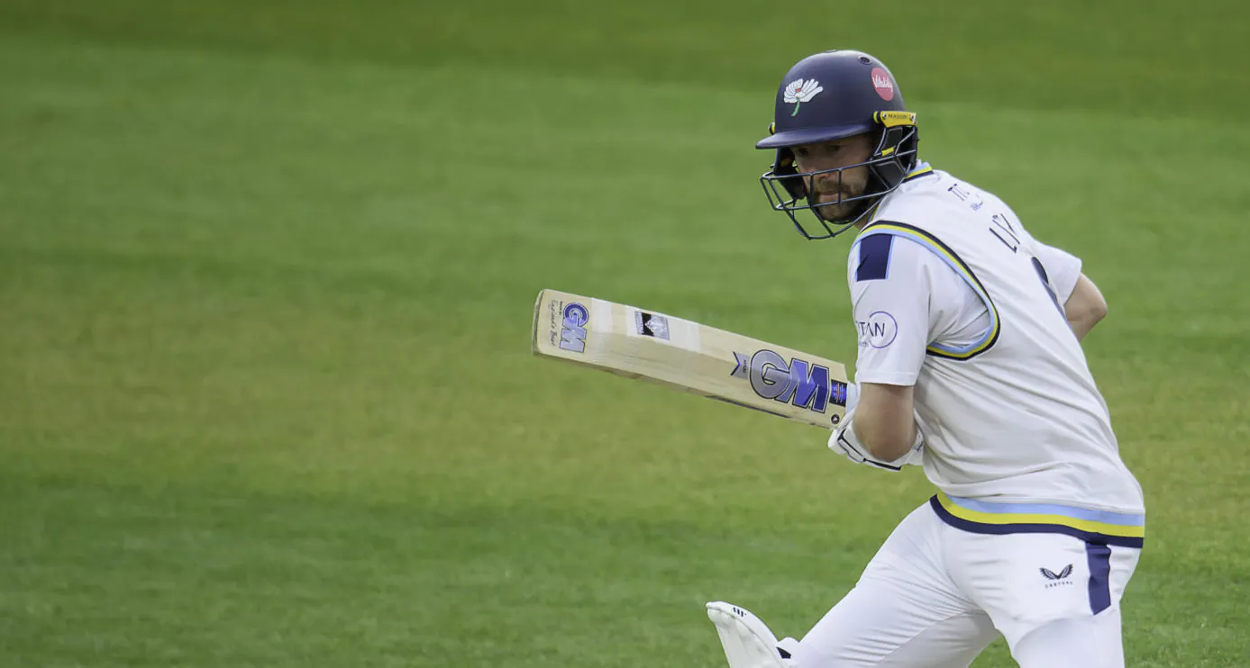 Picture by Allan McKenzie/SWPix.com. Matthew Revis at the crease this morning en-route to 40.