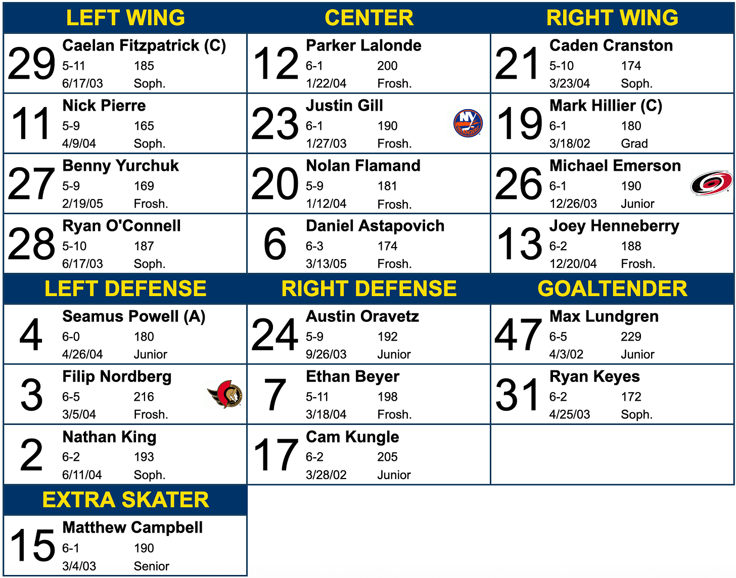Merrimack will get defenseman Matthew Campbell back in the lineup tonight. He missed last weekend’s series against Boston College with an injury. Aside from Campbell’s return, there are no other lineup changes for the Warriors. Trevor Hoskin remains out with a lower-body injury. Ty Daneault, Hunter Mayo, and Nils Wallstrom are also out with injuries.