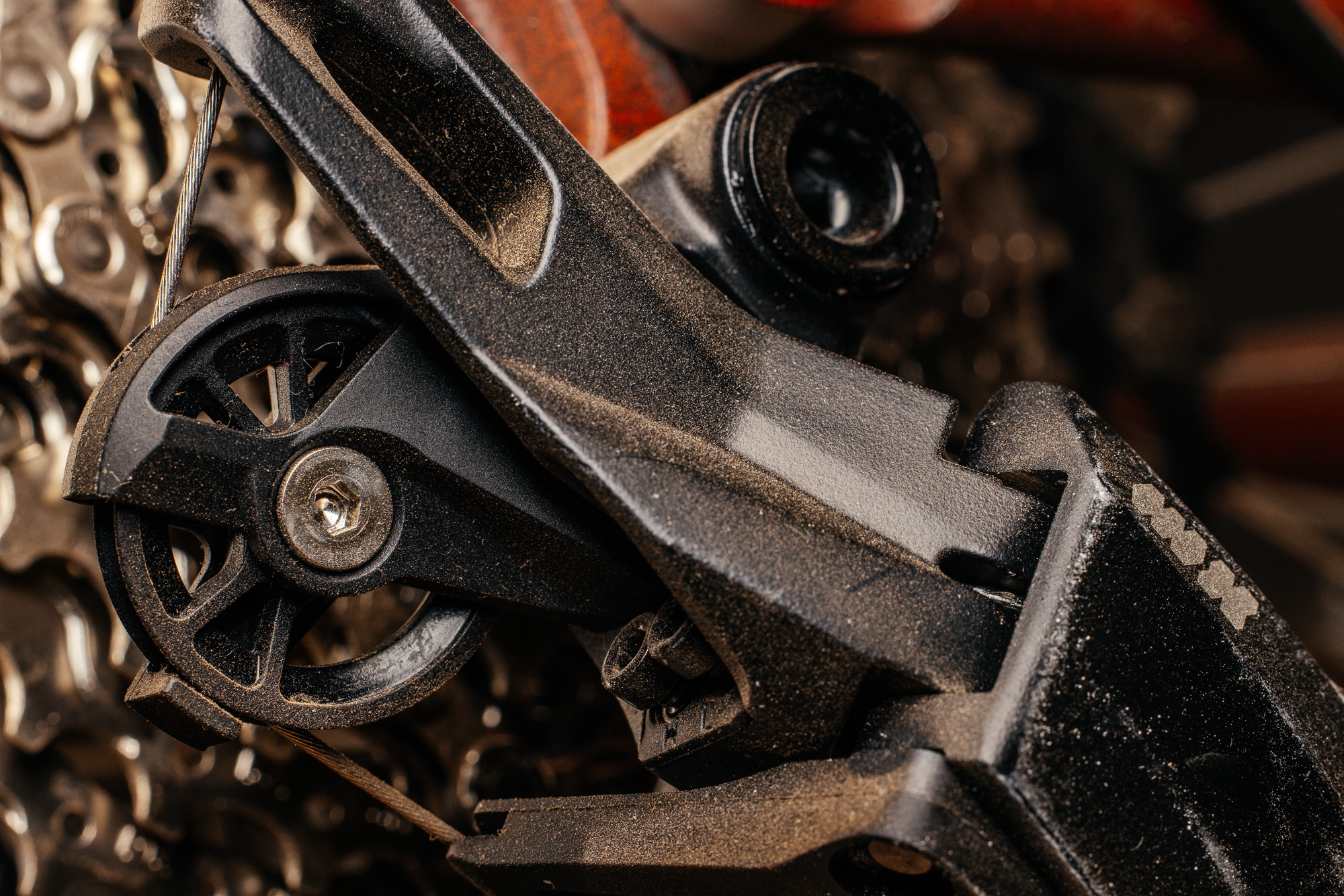 A key difference from other derailleurs is that the MX Pro uses Igus bushings rather than sealed bearings. But between the strong horizontal parallelogram design and an all-new clutch that offers 30% more force than the Advent 10-speed mech, the MX Pro is still made for the rigors of modern trail riding, bushings or bearings aside.
