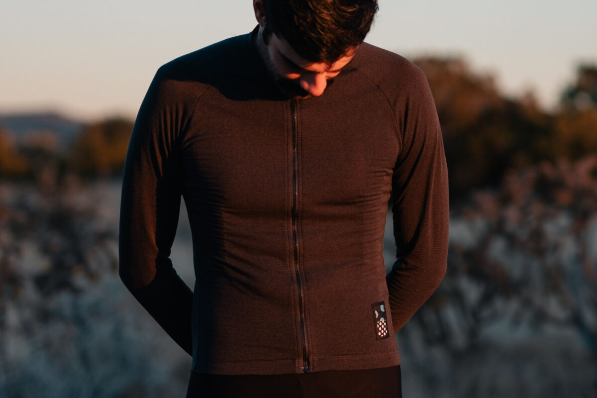 It’s a Polartec knit fabric that’s super lightweight, cozy, and ridiculously breathable on its own. Paired with their jacket, it becomes an excellent base layer for cold mornings. Such a versatile piece for ultra racing.