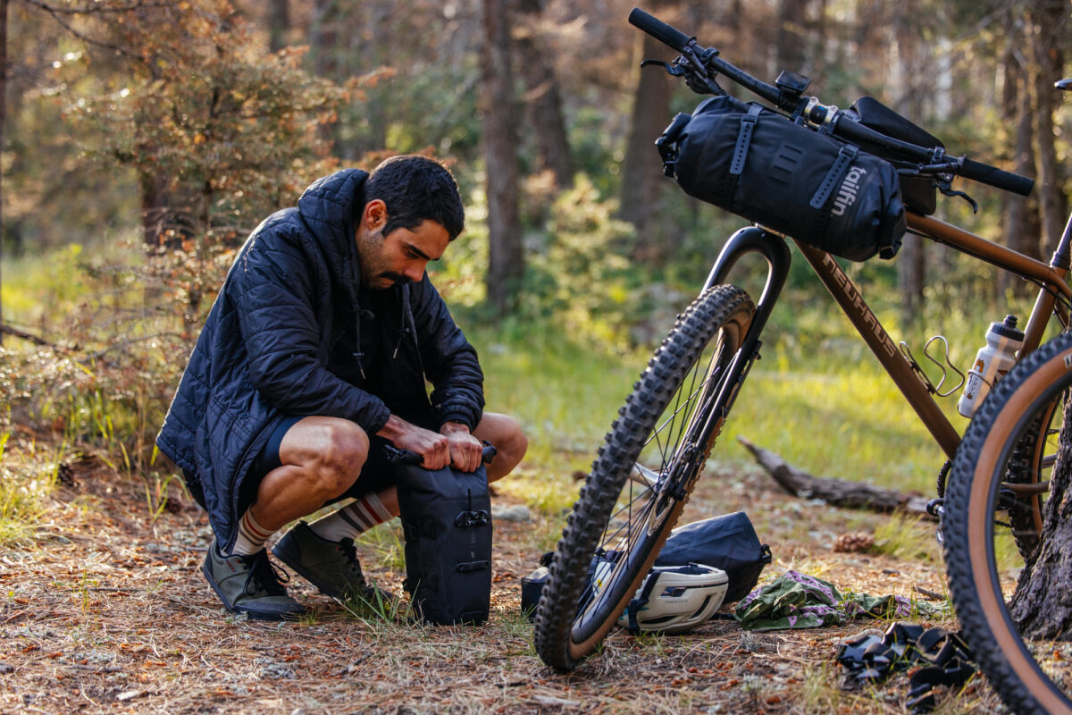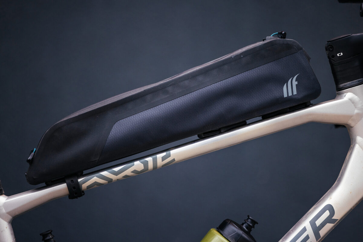 The 2.2-liter Long Top Tube Bag had plenty of room for snacks, a tire repair kit, and a power bank. I really like the modular dividers; I was able to configure the inside exactly how I wanted, and it even has a special pocket for cash and ID.