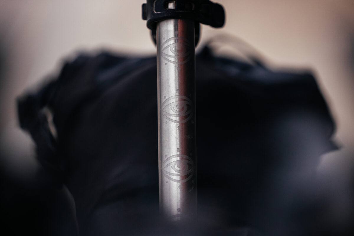 It’s a beautiful Ti post with a super cool eyeball pattern. I truly don’t know how my butt cheeks would’ve felt after 300 miles on a carbon post, and I guess we’ll never know. The flex and comfort are immediately noticeable, and it made a massive difference over 23 hours of riding. Such a thoughtful gift. Thanks, John.