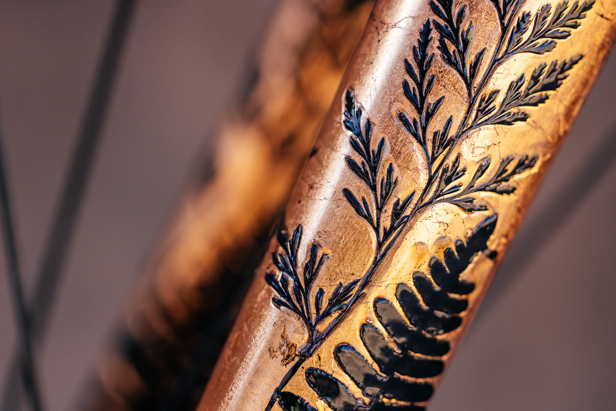 The next phase is translating the design onto the bike. After careful sanding, I transfer my drawn design onto the carbon or block off areas where other mediums will be applied and begin painting. This is the most time-consuming stage, and with such slow gratification, trusting the process is important, but seeing it come to life with each brush stroke is a kind of slow-burn excitement.