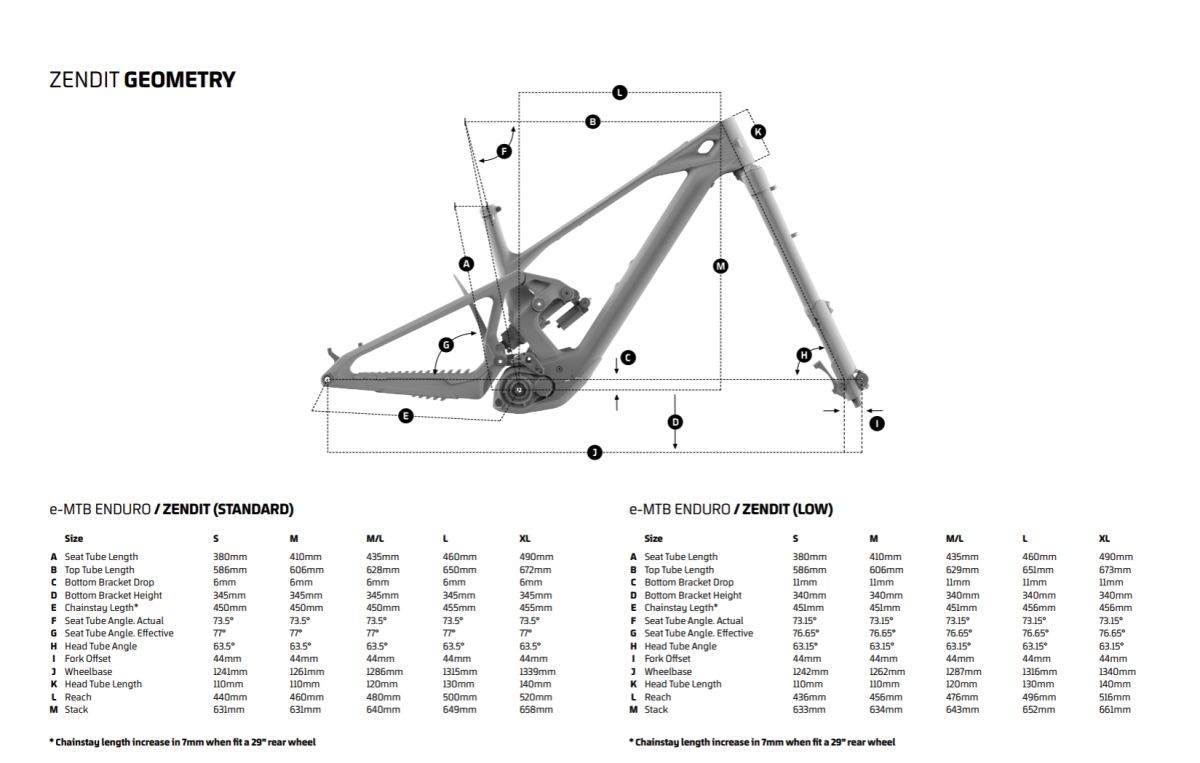 Out of the box, the ZENDIT sports a mixed-wheel (mullet) configuration. It’s a move that makes sense for a 165mm-travel bike designed for “aggressive riding.” You get the rollover of the 29” front wheel and the maneuverability of the 27.5” rear wheel.