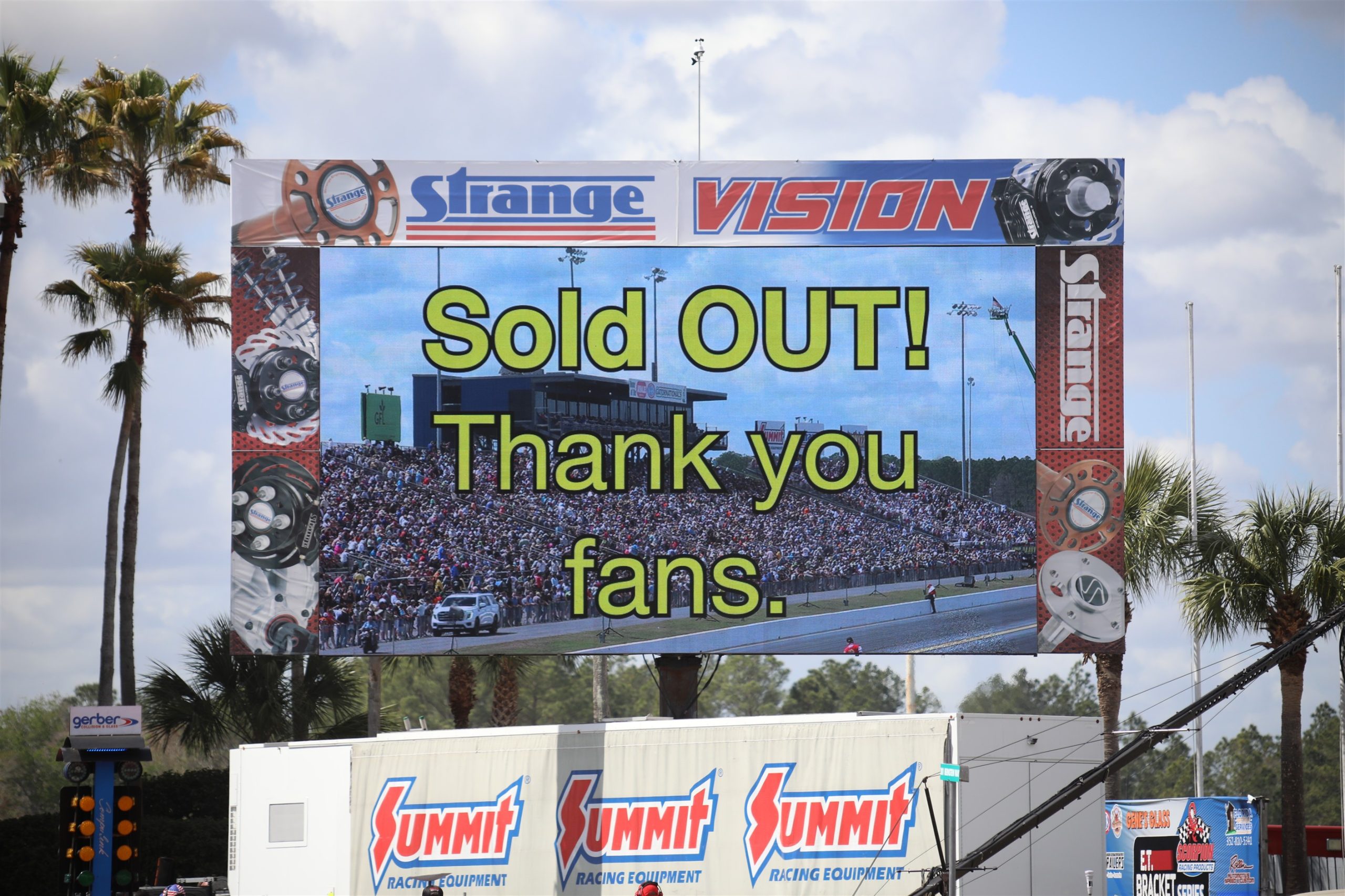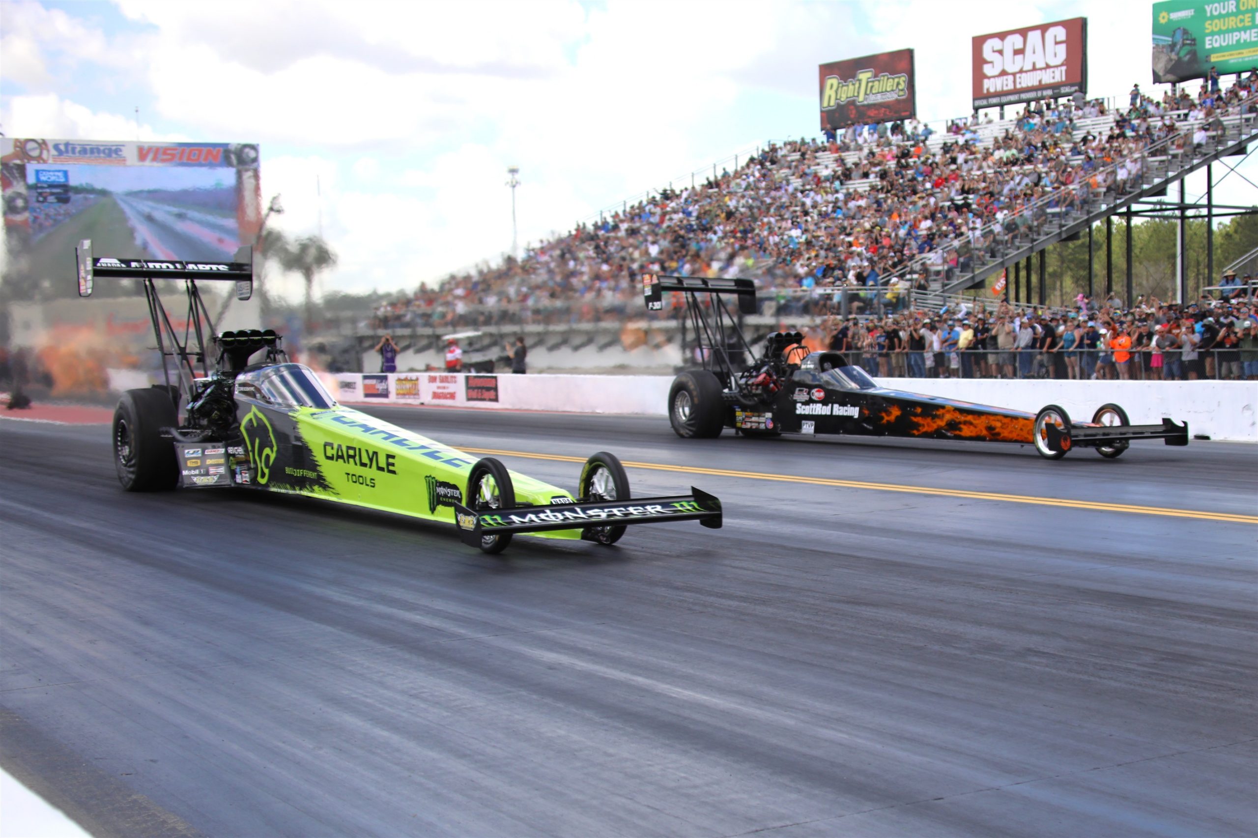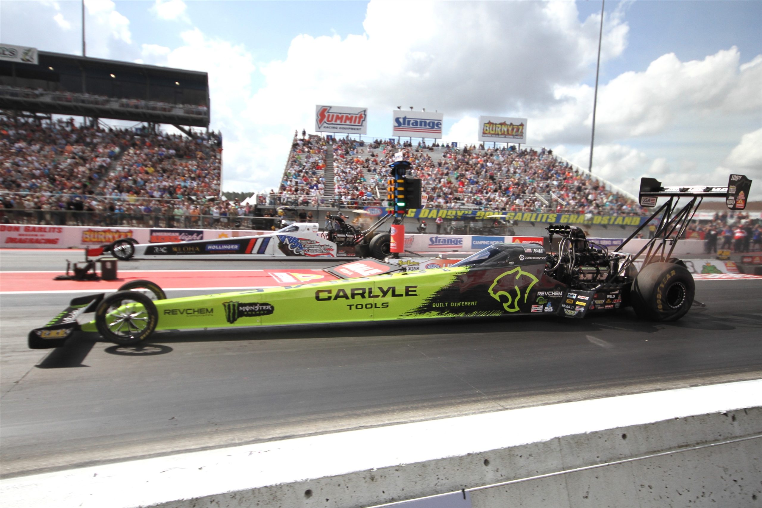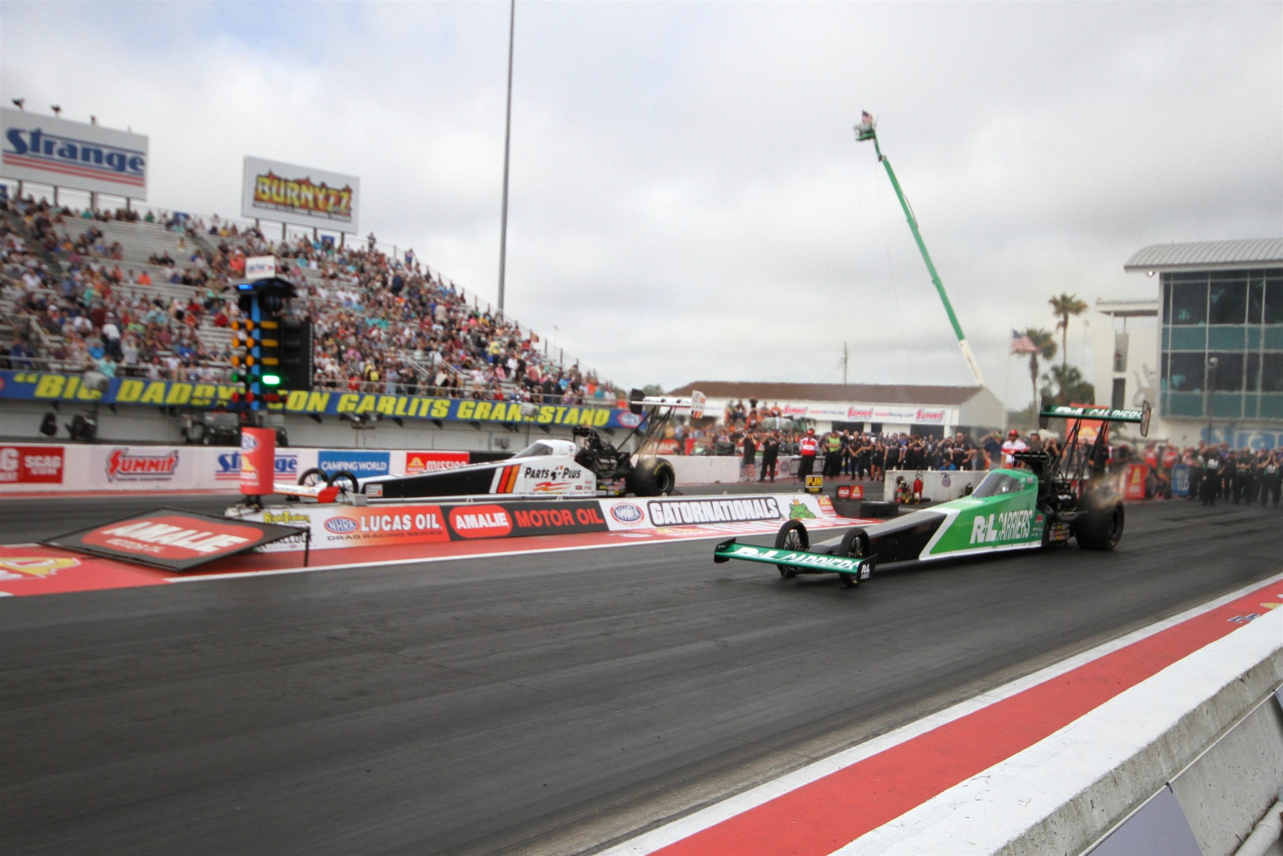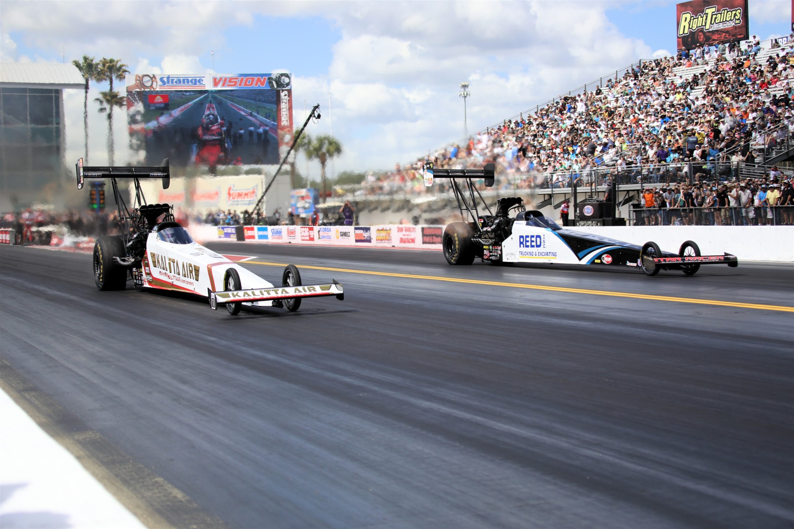 Kenny Bernstein’s shattering of the 300-mph barrier at the 1992 NHRA Gatornationals was voted by fans as the No. 1 highlight of NHRA’s Top 75 Moments.Gainesville Raceway celebrates the NHRA Legends with their Top 75 Drivers presentation.Legends match race final: Bruce Larson def. Joe AmatoTony Stewart’s burnout at the Gatornationals.Antron Brown in the near lane taking on John Force Racing’s Josh Hart.Shawn Reed’s burnout as he prepares to take on Shawn Langdon in the All-Star Callout.Langdon advances as with a 3.789 as he bests Reed who pulled a 3.838Will Smith at the Gatornationals.