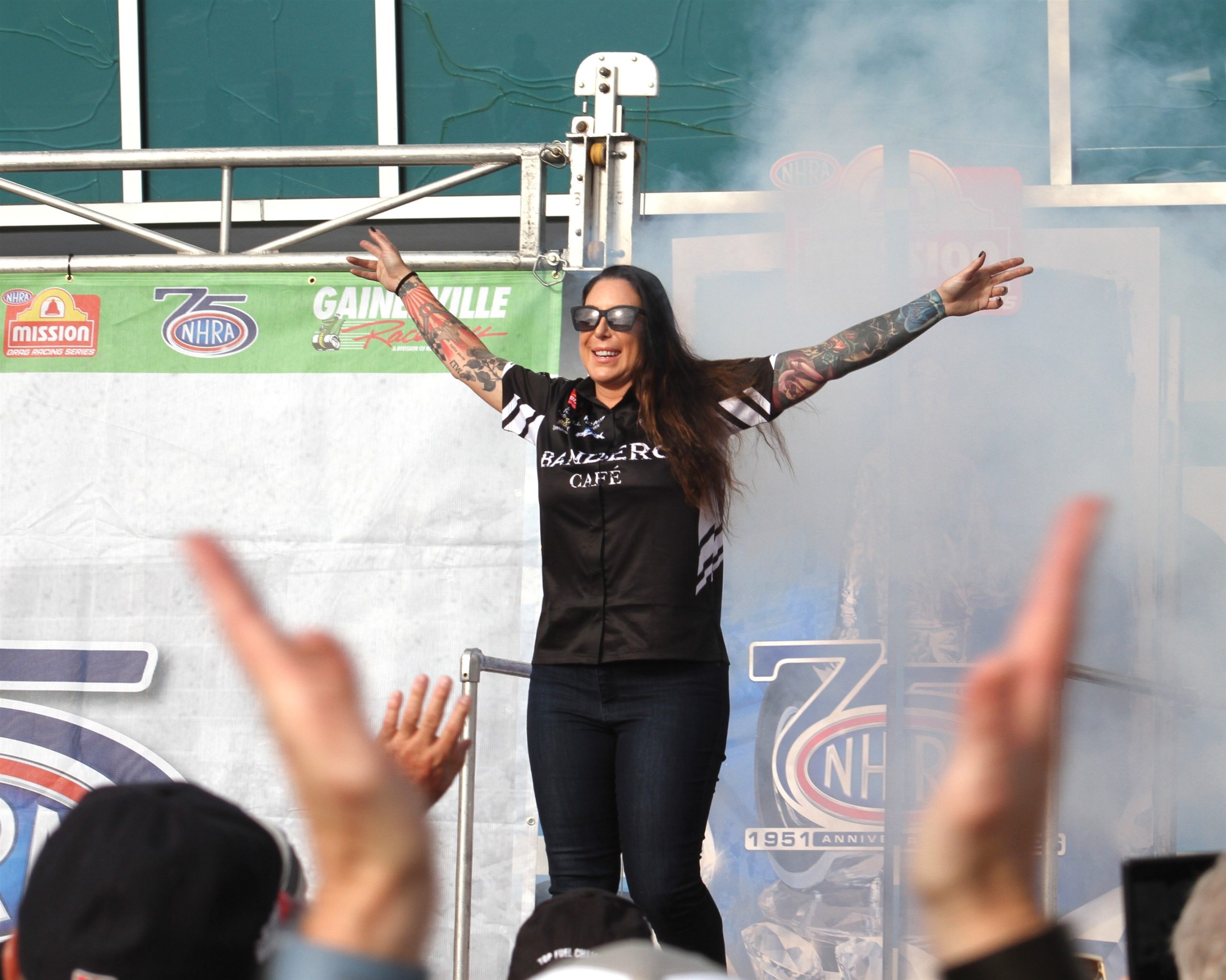 Maddi Gordon in the near lane taking on ScottRod Racing’s Scott Farley in the Q3 round. Farley with a good pass early, then it appeared to push out a head gasket. The engine banged right in the lights. He still makes his quickest pass of the weekend with an ET of 4.051 at 298.73 mph but will not get in the show. Gordon had a hole out early and then was up in smoke before she clicked it off.NHRA Funny Car Driver Spencer HydeJohn Force Racing’s Alexis DeJoriaJohn Force Racing’s Fast Jack BeckmanJohn Force Racing’s Jordan Vandergriff.John Force Racing’s Jack Beckman in the near lane taking on his teammate Jodan Vandergriff. A good side-by-side, both down the groove with clean, straight passes. Vandergriff gets the hole-shot and extends his lead all the way through the run. Beckman makes the third quickest pass of the session in the loss.Cruz Pedregon at the Gatornationals.TSR Nitro’s Matt Hagan.Paul Lee earned his NHRA 1st win at Phoenix last year. Paul is an expert skydiver with 1,500-plus jumps, and earned college degrees including a BBA Summa Cum Laude from Wharton Business School at University of Pennsylvania and MBA and JD from Rutgers University.In 2023, Julie Natass earned her first world championship in the NHRA Lucas Oil Drag Racing Series Top Alcohol Dragster category. In 2024, Julie obtained her Top Fuel dragster license to make her debut in the NHRA Mission Foods Drag Racing Series.DHL’s JR ToddNAPA’s Ron Capps was the No. 1 qualifier at the Gatornationals.Justin Ashley in the near lane prepares to take on Tony Stewart in the Top Fuel All-Star Call Out.It’s Antron Brown in the far lane taking on Josh Hart in the Top Fuel Call Out. Antron won with an ET of 3.790 at 330.63 mph.Shawn Reed of Reed Trucking & Excavating.Scott Farley of ScottRod Racing.Dan Mercier from Valleyfield, Quebec Canada.Gary Pritchett took over Top Fuel driving duties for Doug Foley, a veteran racer and multi-time IHRA event winner.The 2026 Gatornationals is Sold OUT!NHRA Fans sold it out on Saturday in Gainesville.United States Navy Color Guard.Leah Pruett, son Dominic and Jasmine Salinas.John Force Racing’s Jordan Vandergriff and Fast Jack Beckman.John Force Racing’s Alexis DeJoria.NHRA Driver Introductions Shawn Reed and Tony Schumacher.Track Operations during the delay.It’s Tony Stewart in the near lane taking on Clay Millican in the All-Star Top Fuel Callout. Millican wins and will advance to the finals vs Antron Brown.Maddi Gordon is a two national events (Las Vegas and Seattle) in Top Alcohol Funny Car Champion. She now drives for Ron Capps Racing.Eight-time Top Fuel champion and 88-time race winner Tony Schumacher drives for Rick Ware Racing.