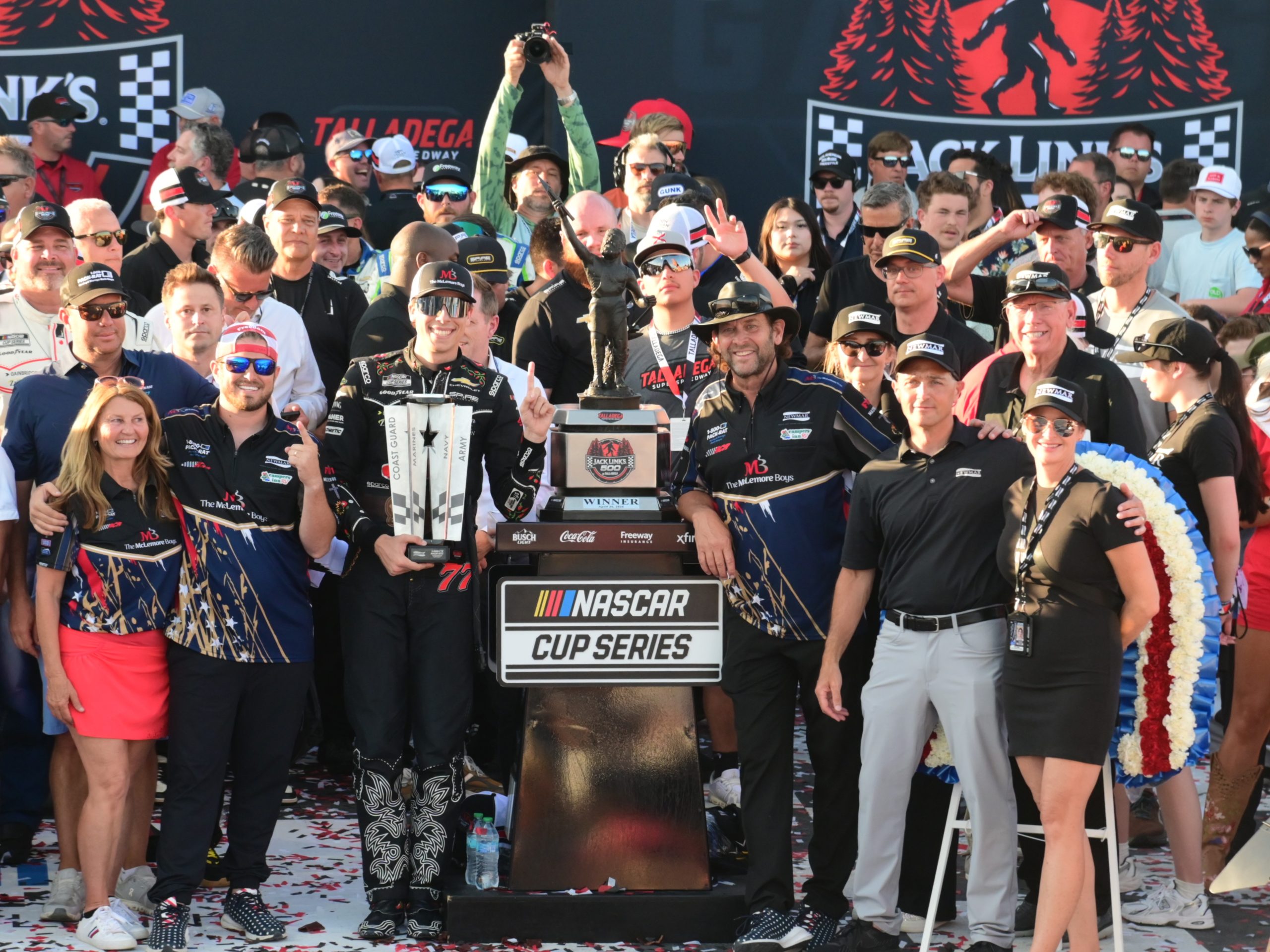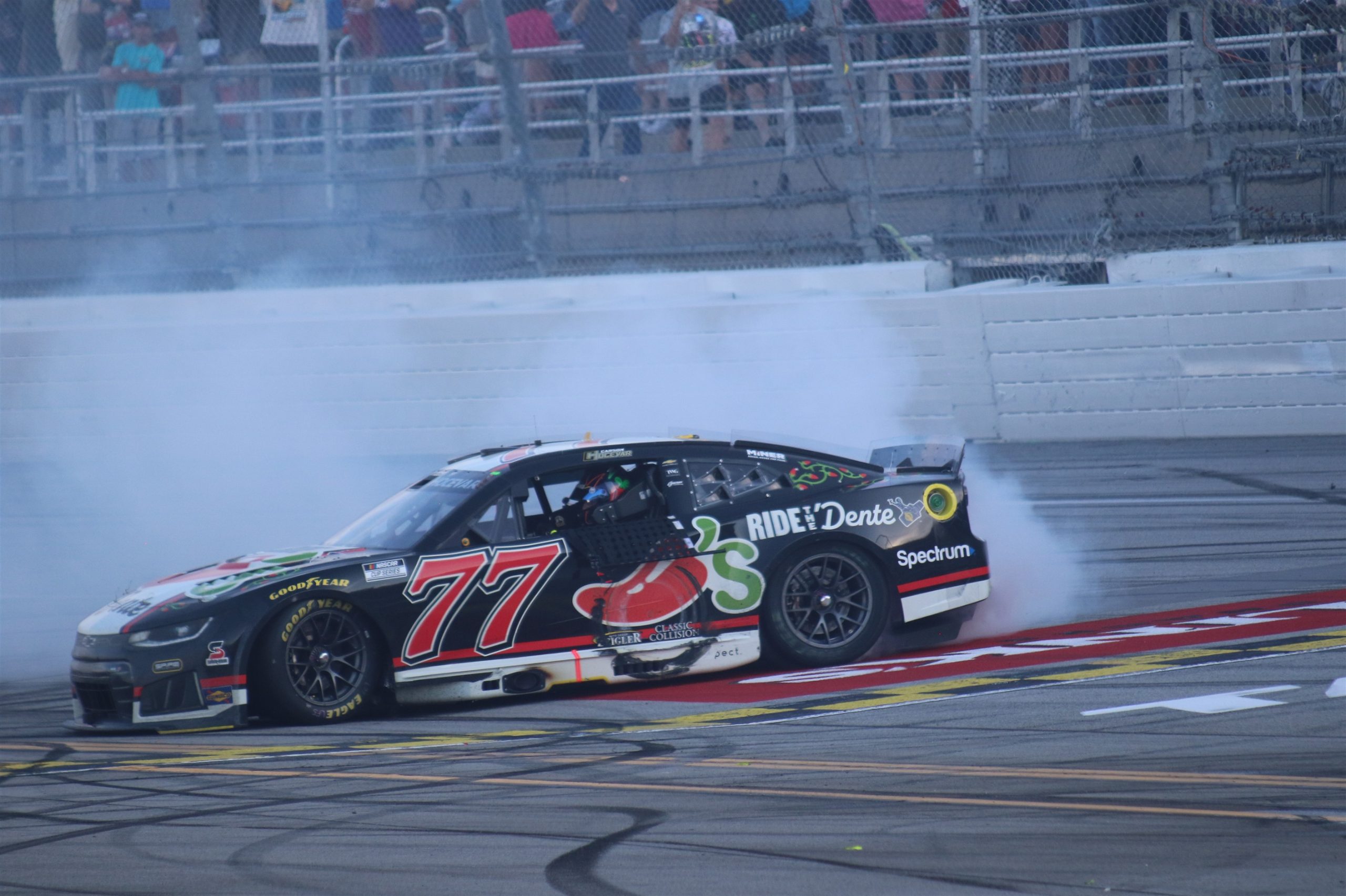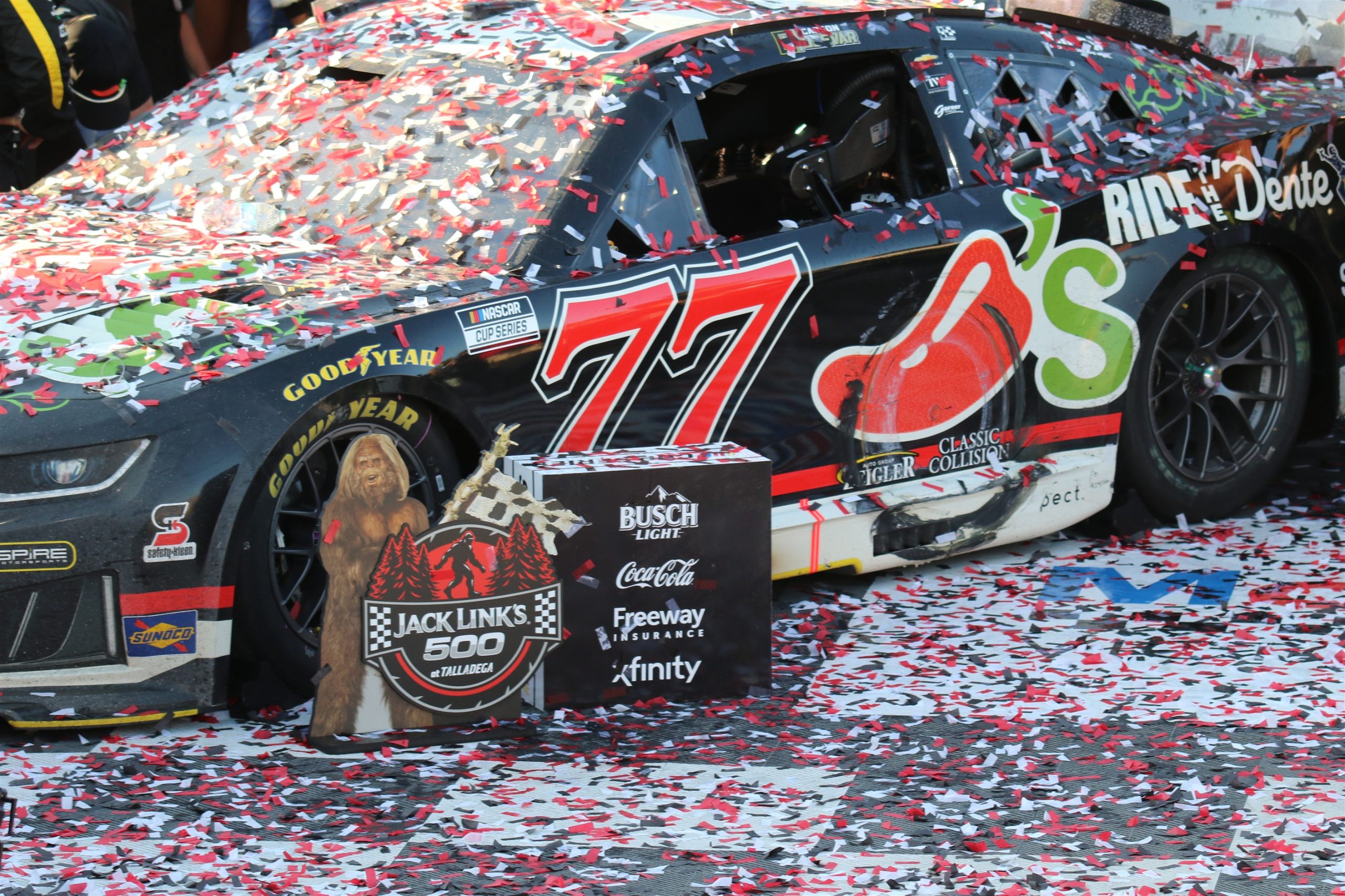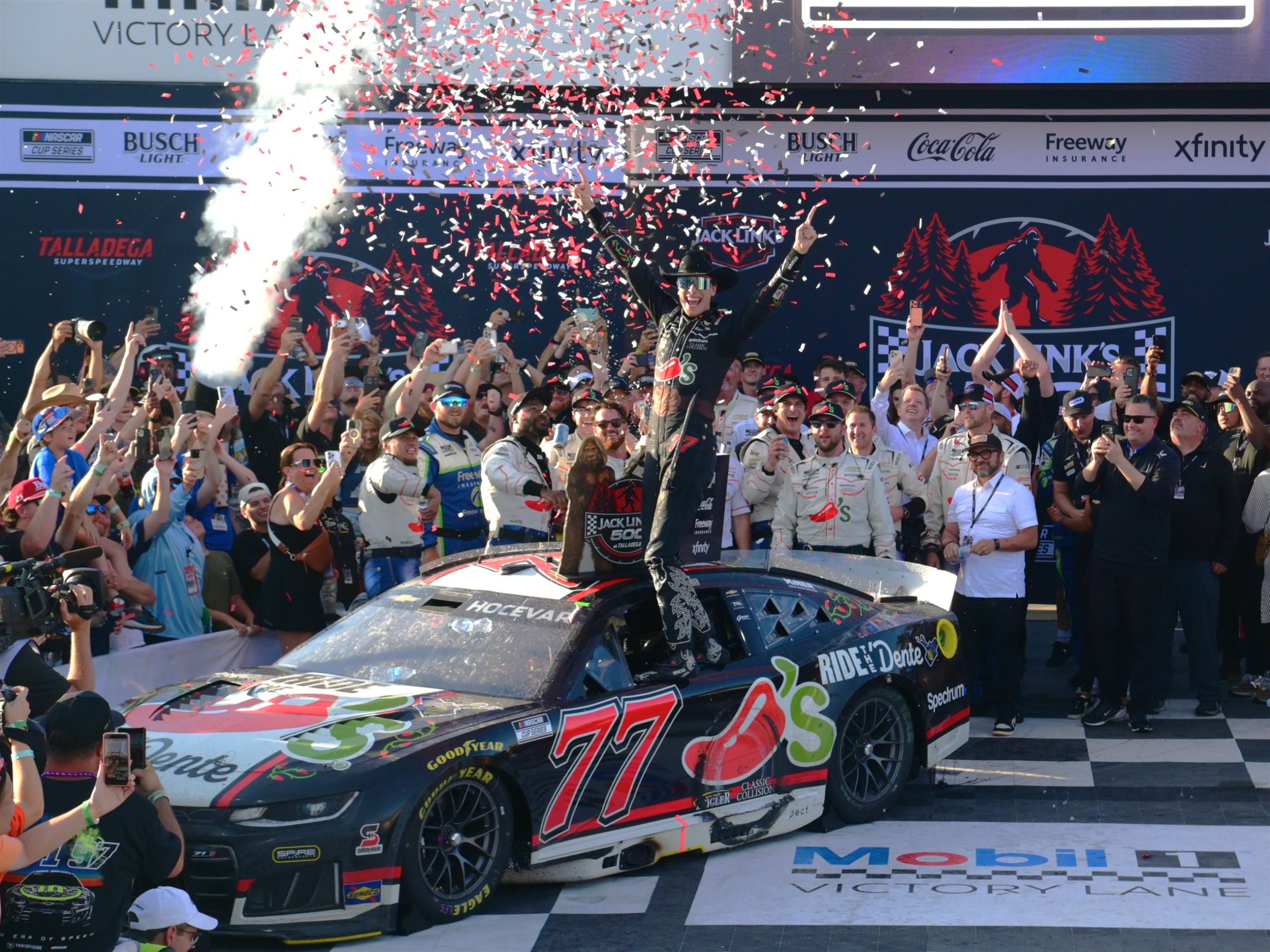 On Lap # 137, No. 1 Ross Chastain leads Christoper Bell, Chris Buescher, Ricky Stenhouse, Jr., Todd Gilliland & Ryan PreeceTight Racing down the backstretch as Buescher is nose to tail with Chastain.Reddick is having a bad day, as the Cup Series Points Leader shows major damage from the crash.Kyle Busch escaped damage in The Big One and went on to finish P10, his best of the year so far with RCR.Late in Stage Two, it’s Gilliland, Bell, Ware and Buscher. No. 51 Cody Ware of Greensboro, NC ran great all day but was collected in a last lap crash.Zane Smith finished P5 and had the fastest lap of the race at 198.413 mph!Lap 161 Reddick comes in smoking hot while missing his front left tire. The sparks ignited fuel spilled in Ryan Preece’s pit stall.Caution for debris on the track, as Tyler Reddick lost a tire in Turn 2.Green flag with 22 laps to go. Buescher leads Hocevar, Bowman, Stenhouse, Jones & Elliott.Late in the race, Hocevar leads Buescher by a nose. Jones, Bowman and Elliott round out the top 5.Lap # 187, with two to go it’s Hocevar leading Buescher!White Flag and it’s Buescher over Hocevar by a nose!Last Lap Dash as Bowman pushes Hocevar!It’s Carson Hocevar by half a car length over Chris Buescher on the last lap as a crash collects Ryan Preece, Austin Dillon, Shane Van Gisbergen, Christopher Bell and Cody Ware.Carson Hocevar wins his 1st NASCAR Cup Race in the Jack Link’s 500 at Talladega Superspeedway! Chris Buescher, Alex Bowman, Chase Elliott and Zane Smith round out the Top 5! Followed by Ricky Stenhouse, Jr., Ross Chastain, Austin Cindric, Noah Gragson and Kyle Busch complete the Top 10!Kyle Busch was P10, followed by Todd Gilliland, Daniel Suarez, Ty Dillion, Tyler Reddick and Denny Hamlin round out the Top 15 as Preece, Austin Dillon, SVG, Bell and Ware continue their crash on the frontstretch!Hocevar’s burnout crosses the start-finish line at Talladega!Carson Hocevar’s burnout at Talladega!The Fox Sports Drone gets a birds-eye view of Hocevar’s burnout! – Photo courtesy of DG PhotoEpic photo of Carson Hocevar’s legendary victory celebration! Photo courtesy of DG PhotoCarson Hocevar salutes the crowd at the start-finish line! – Photo courtesy of DG PhotoCarson enters the Mobile 1 Victory Lane like a Boss!Carson Hocevar celebrates his first NASCAR win with confetti cannons in victory lane at Talladega Superspeedway!Carson applies the checkered flag sticker to his No. 77 car as his Spire Motorsport Teammate Daniel Suarez looks on!Carson Hocevar is interviewed & congratulated by Steve Post of the Motor Racing Network!Zac Brown, a three-time Grammy Award-winning artist and lead singer of Zac Brown Band, presents the Iconic Vulcan Trophy to Carson Hocevar.Carson Hocevar is presented the Freedom Trophy by The McLemore BoysCarson Hocevar is presented the traditional Talladega victory wreath by Miss Alabama, Emma Terry.Carson Hocevar celebrates his victory in the Jack Links 500 with his crew and Miss Alabama, Emma TerryDon’t miss the Chaos of the Chase for the NASCAR Cup Series this fall at Talladega—where every lap could change the championship in the Yellawood 500 at Talladega Superspeedway!