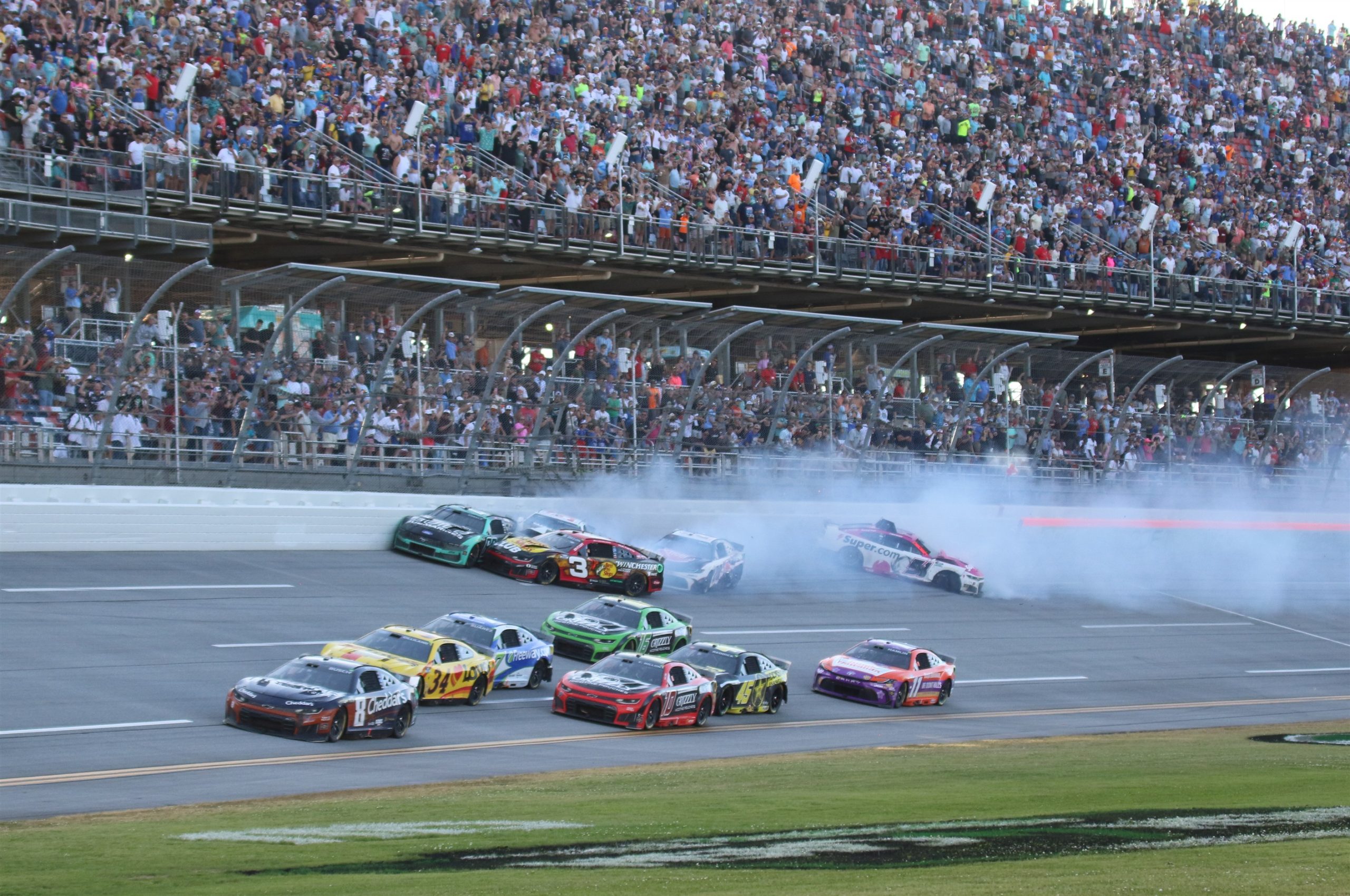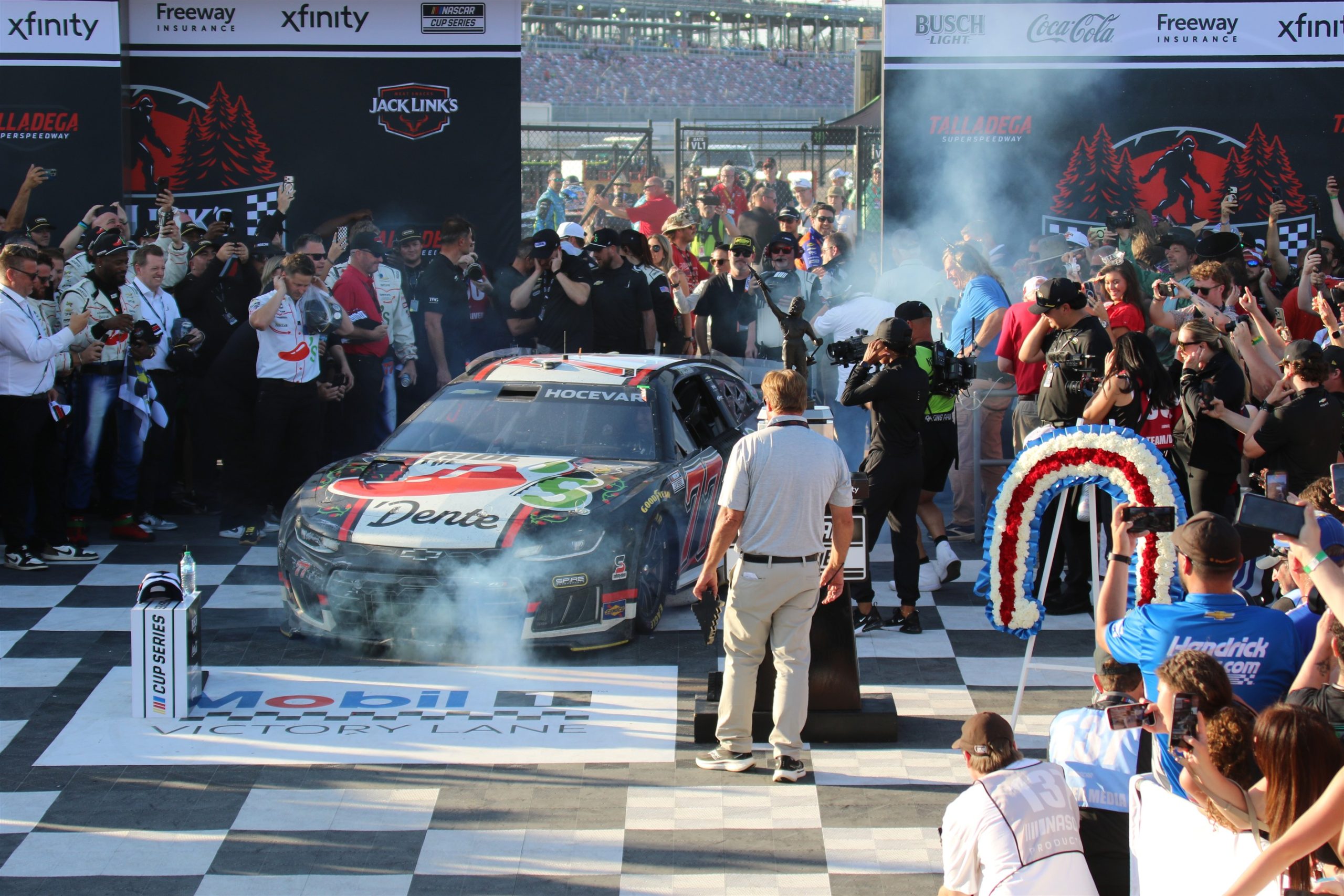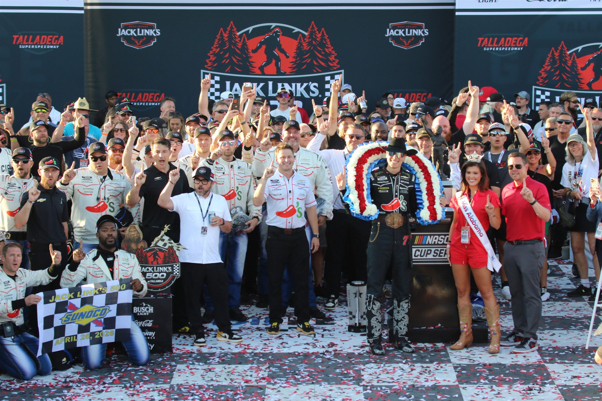 On Lap # 137, No. 1 Ross Chastain leads Christoper Bell, Chris Buescher, Ricky Stenhouse, Jr., Todd Gilliland & Ryan PreeceTight Racing down the backstretch as Buescher is nose to tail with Chastain.Reddick is having a bad day, as the Cup Series Points Leader shows major damage from the crash.Kyle Busch escaped damage in The Big One and went on to finish P10, his best of the year so far with RCR.Late in Stage Two, it’s Gilliland, Bell, Ware and Buscher. No. 51 Cody Ware of Greensboro, NC ran great all day but was collected in a last lap crash.Zane Smith finished P5 and had the fastest lap of the race at 198.413 mph!Lap 161 Reddick comes in smoking hot while missing his front left tire. The sparks ignited fuel spilled in Ryan Preece’s pit stall.Caution for debris on the track, as Tyler Reddick lost a tire in Turn 2.Green flag with 22 laps to go. Buescher leads Hocevar, Bowman, Stenhouse, Jones & Elliott.Late in the race, Hocevar leads Buescher by a nose. Jones, Bowman and Elliott round out the top 5.Lap # 187, with two to go it’s Hocevar leading Buescher!White Flag and it’s Buescher over Hocevar by a nose!Last Lap Dash as Bowman pushes Hocevar!It’s Carson Hocevar by half a car length over Chris Buescher on the last lap as a crash collects Ryan Preece, Austin Dillon, Shane Van Gisbergen, Christopher Bell and Cody Ware.Carson Hocevar wins his 1st NASCAR Cup Race in the Jack Link’s 500 at Talladega Superspeedway! Chris Buescher, Alex Bowman, Chase Elliott and Zane Smith round out the Top 5! Followed by Ricky Stenhouse, Jr., Ross Chastain, Austin Cindric, Noah Gragson and Kyle Busch complete the Top 10!Kyle Busch was P10, followed by Todd Gilliland, Daniel Suarez, Ty Dillion, Tyler Reddick and Denny Hamlin round out the Top 15 as Preece, Austin Dillon, SVG, Bell and Ware continue their crash on the frontstretch!Hocevar’s burnout crosses the start-finish line at Talladega!Carson Hocevar’s burnout at Talladega!The Fox Sports Drone gets a birds-eye view of Hocevar’s burnout! – Photo courtesy of DG PhotoEpic photo of Carson Hocevar’s legendary victory celebration! Photo courtesy of DG PhotoCarson Hocevar salutes the crowd at the start-finish line! – Photo courtesy of DG PhotoCarson enters the Mobile 1 Victory Lane like a Boss!Carson Hocevar celebrates his first NASCAR win with confetti cannons in victory lane at Talladega Superspeedway!Carson applies the checkered flag sticker to his No. 77 car as his Spire Motorsport Teammate Daniel Suarez looks on!Carson Hocevar is interviewed & congratulated by Steve Post of the Motor Racing Network!Zac Brown, a three-time Grammy Award-winning artist and lead singer of Zac Brown Band, presents the Iconic Vulcan Trophy to Carson Hocevar.Carson Hocevar is presented the Freedom Trophy by The McLemore BoysCarson Hocevar is presented the traditional Talladega victory wreath by Miss Alabama, Emma Terry.Carson Hocevar celebrates his victory in the Jack Links 500 with his crew and Miss Alabama, Emma TerryDon’t miss the Chaos of the Chase for the NASCAR Cup Series this fall at Talladega—where every lap could change the championship in the Yellawood 500 at Talladega Superspeedway!