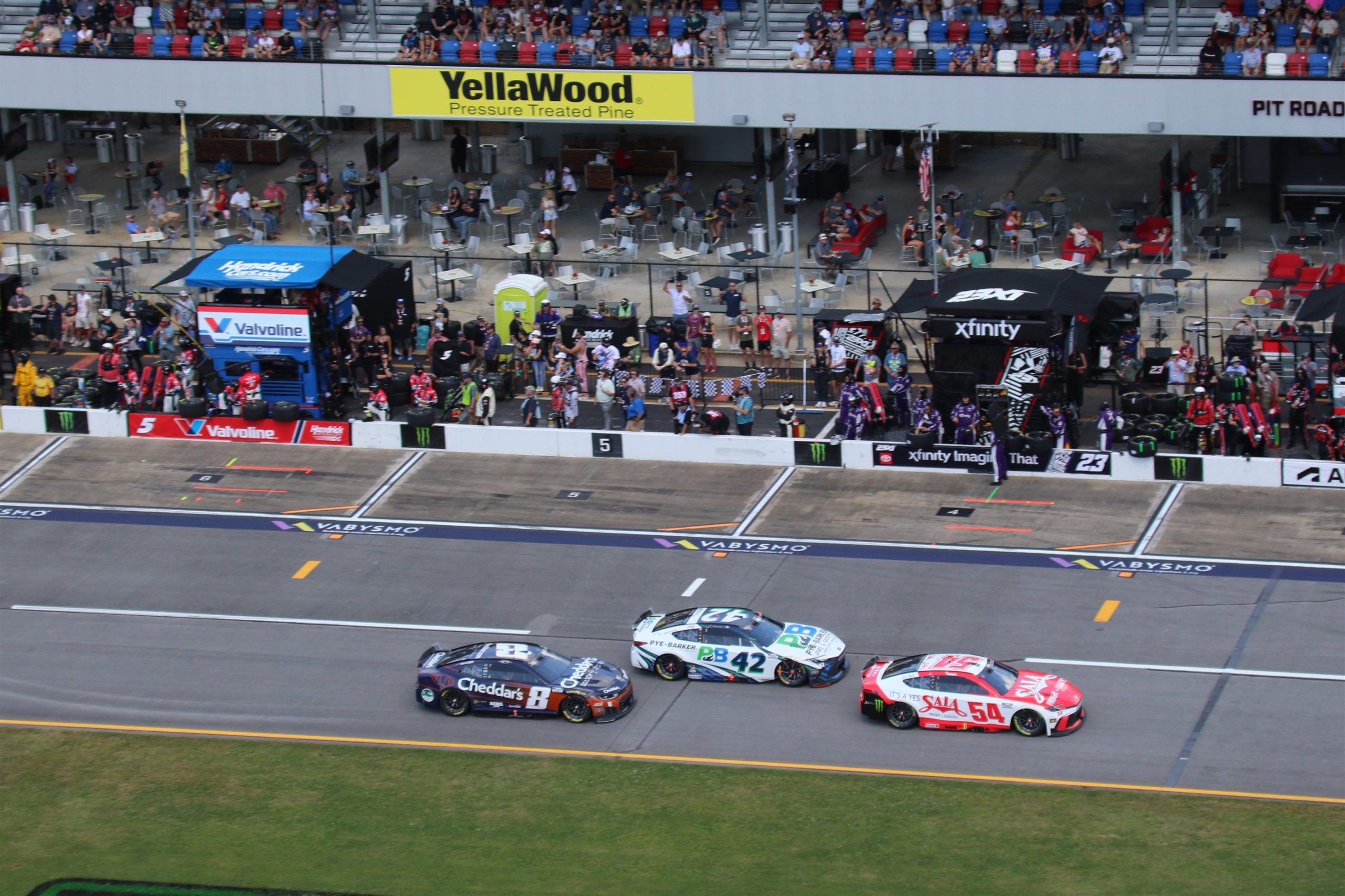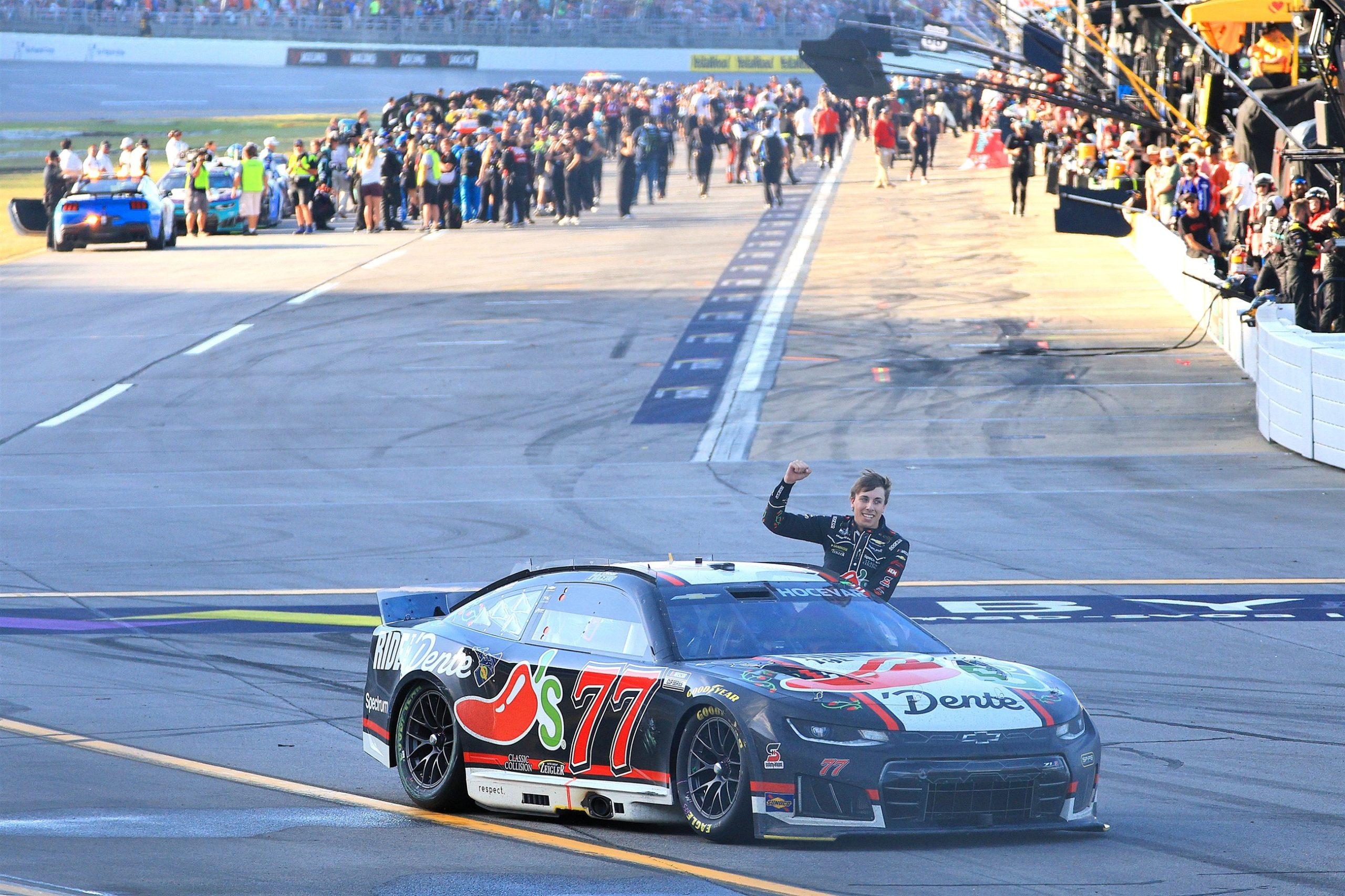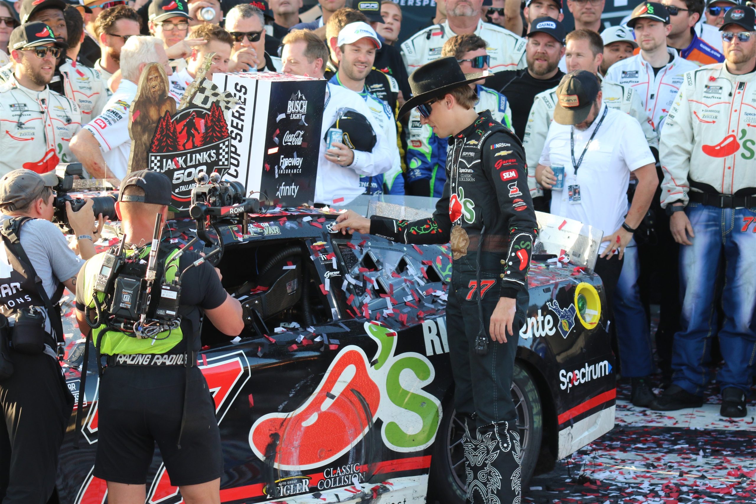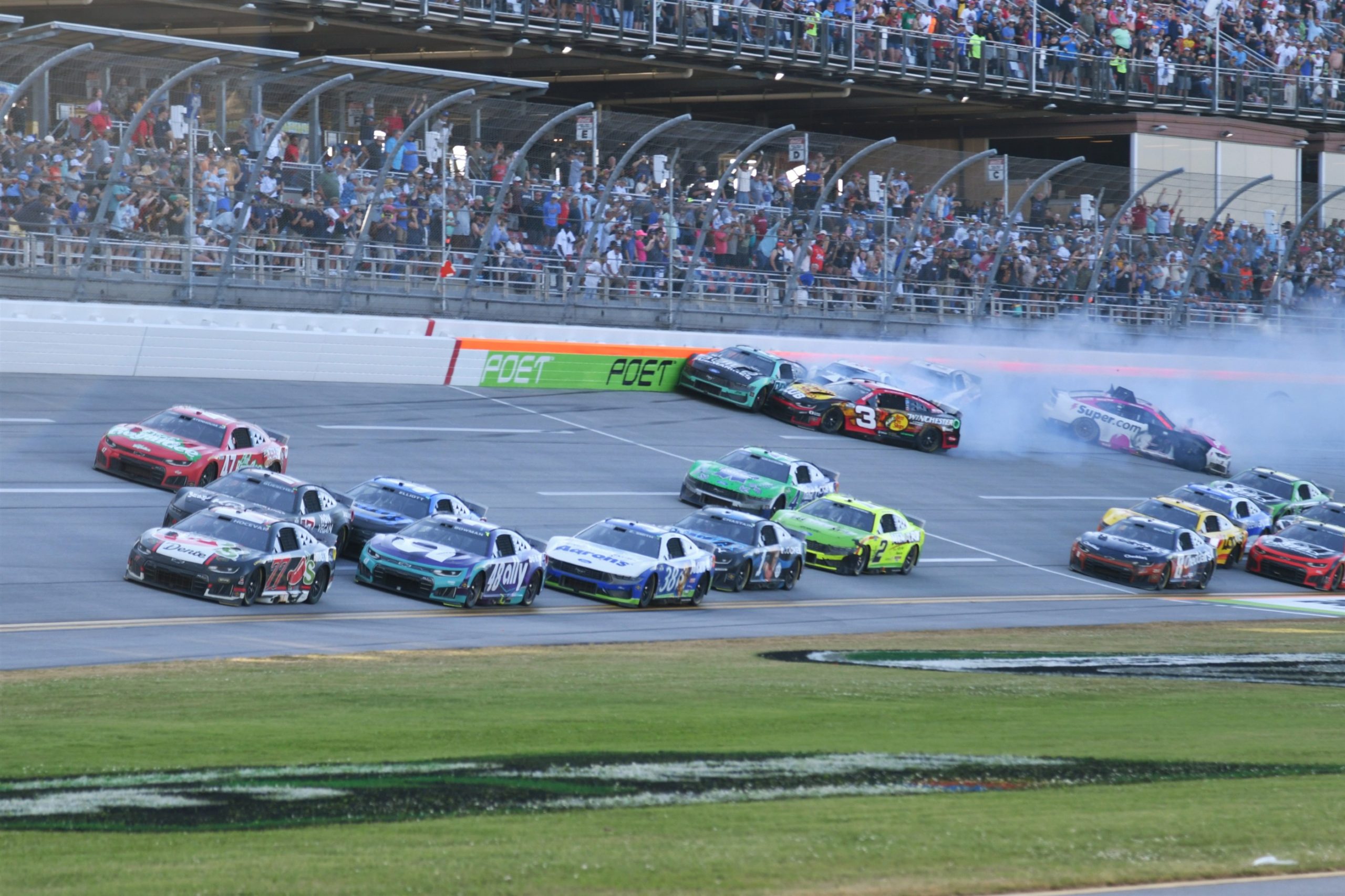 On Lap # 137, No. 1 Ross Chastain leads Christoper Bell, Chris Buescher, Ricky Stenhouse, Jr., Todd Gilliland & Ryan PreeceTight Racing down the backstretch as Buescher is nose to tail with Chastain.Reddick is having a bad day, as the Cup Series Points Leader shows major damage from the crash.Kyle Busch escaped damage in The Big One and went on to finish P10, his best of the year so far with RCR.Late in Stage Two, it’s Gilliland, Bell, Ware and Buscher. No. 51 Cody Ware of Greensboro, NC ran great all day but was collected in a last lap crash.Zane Smith finished P5 and had the fastest lap of the race at 198.413 mph!Lap 161 Reddick comes in smoking hot while missing his front left tire. The sparks ignited fuel spilled in Ryan Preece’s pit stall.Caution for debris on the track, as Tyler Reddick lost a tire in Turn 2.Green flag with 22 laps to go. Buescher leads Hocevar, Bowman, Stenhouse, Jones & Elliott.Late in the race, Hocevar leads Buescher by a nose. Jones, Bowman and Elliott round out the top 5.Lap # 187, with two to go it’s Hocevar leading Buescher!White Flag and it’s Buescher over Hocevar by a nose!Last Lap Dash as Bowman pushes Hocevar!It’s Carson Hocevar by half a car length over Chris Buescher on the last lap as a crash collects Ryan Preece, Austin Dillon, Shane Van Gisbergen, Christopher Bell and Cody Ware.Carson Hocevar wins his 1st NASCAR Cup Race in the Jack Link’s 500 at Talladega Superspeedway! Chris Buescher, Alex Bowman, Chase Elliott and Zane Smith round out the Top 5! Followed by Ricky Stenhouse, Jr., Ross Chastain, Austin Cindric, Noah Gragson and Kyle Busch complete the Top 10!Kyle Busch was P10, followed by Todd Gilliland, Daniel Suarez, Ty Dillion, Tyler Reddick and Denny Hamlin round out the Top 15 as Preece, Austin Dillon, SVG, Bell and Ware continue their crash on the frontstretch!Hocevar’s burnout crosses the start-finish line at Talladega!Carson Hocevar’s burnout at Talladega!The Fox Sports Drone gets a birds-eye view of Hocevar’s burnout! – Photo courtesy of DG PhotoEpic photo of Carson Hocevar’s legendary victory celebration! Photo courtesy of DG PhotoCarson Hocevar salutes the crowd at the start-finish line! – Photo courtesy of DG PhotoCarson enters the Mobile 1 Victory Lane like a Boss!Carson Hocevar celebrates his first NASCAR win with confetti cannons in victory lane at Talladega Superspeedway!Carson applies the checkered flag sticker to his No. 77 car as his Spire Motorsport Teammate Daniel Suarez looks on!Carson Hocevar is interviewed & congratulated by Steve Post of the Motor Racing Network!Zac Brown, a three-time Grammy Award-winning artist and lead singer of Zac Brown Band, presents the Iconic Vulcan Trophy to Carson Hocevar.Carson Hocevar is presented the Freedom Trophy by The McLemore BoysCarson Hocevar is presented the traditional Talladega victory wreath by Miss Alabama, Emma Terry.Carson Hocevar celebrates his victory in the Jack Links 500 with his crew and Miss Alabama, Emma TerryDon’t miss the Chaos of the Chase for the NASCAR Cup Series this fall at Talladega—where every lap could change the championship in the Yellawood 500 at Talladega Superspeedway!