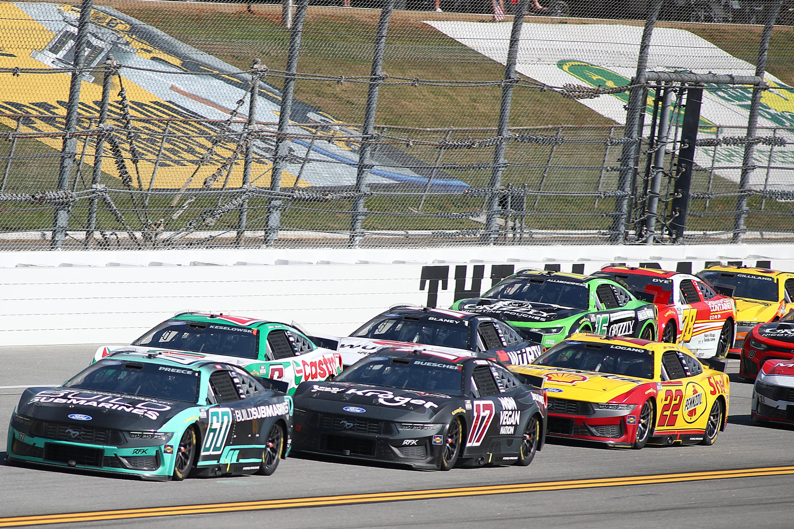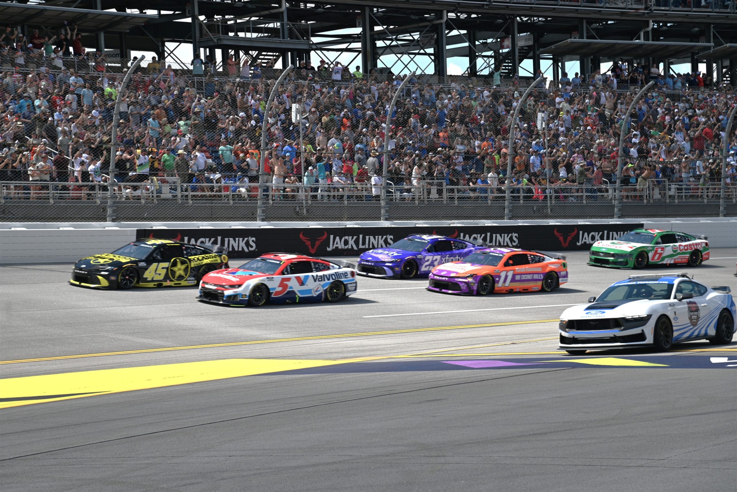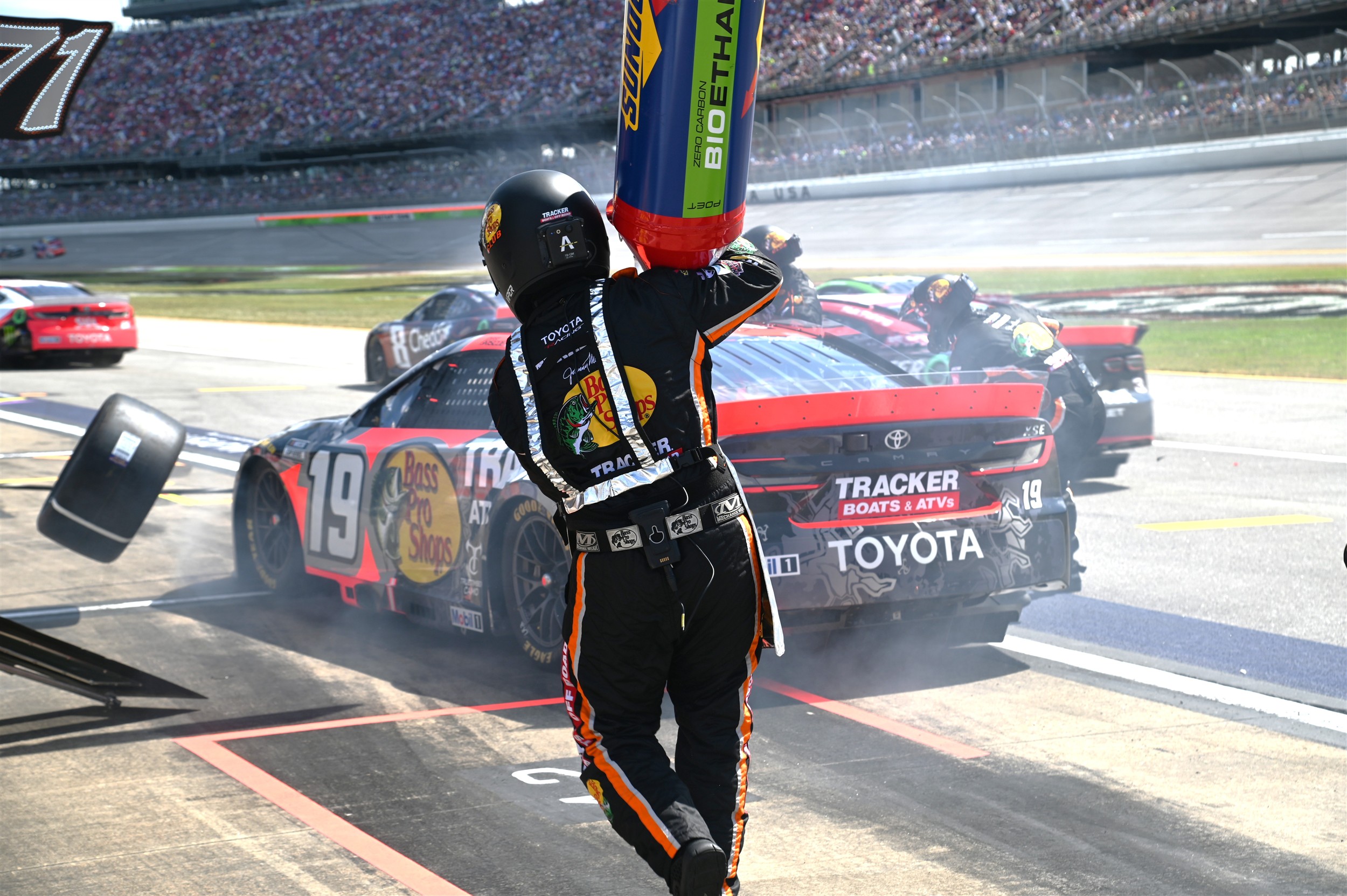 Legendary Racetrack!The Talladega Big Rig with the Giant American Flag!F-35 Flyover after the National Anthem delights the crowd!Pace-Lap of the Jack Links 500 at Talladega Superspeedway in front of the packed crowd!The pace car is away, signaling the start of the race as No. 45 Tyler Reddick leads from the pole position!It’s a full house at Talladega at the start of the race!The field makes their way through the Tri-Oval at the start of the race!Green Flag and the start of the race!Jesse Love driving the No. 33 Richard Childress Racing ChevroletHamlin leads the first lap down the Alabama Gang Superstretch as Reddick begins to fall back.No. 45 Tyler Reddick is off the pace and falling back.From Lap 4-10 No. 3 Austin Dillion, No. 19 Chase Briscoe and No. 11 Denny Hamlin take turns leading the field.No. 45 Tyler Reddick falls back as he reports intermittent engine firing.Reddick continues to fall back to P23 as Hamlin leads.On Lap 10 No. 66 Chad Finchum leads for the first time in his NASCAR career.Chad Finchum leads as Hamlin, Briscoe, Gibbs and Nemechek give chase at full throttle.Laps 10-20 as Finchum, Hamlin and Briscoe opt for speed vs. a fuel saving strategy.Joey Gase goes a lap down on lap # 40.Lap 42 Chase Briscoe pits but comes in hot into the first pit stall off Turn 4 as he locks up the brakes!Chase Briscoe slides through his pit box, right into the path of tire-changer CJ Bailey!CJ Bailey goes flying as the No. 19 Toyota makes contact with him!Chaos ensues in the No. 19 pit box as his crew member & tires go flying and the fuel man gives chase!Briscoe slams it into reverse and gets wrapped up in his air hose!The misstep by Briscoe was an immediate safety violation that penalized the team on the costly pit stop. CJ Bailey was reportedly unhurt in the incident, but the 2025 Yellawood 500 winner hopes for a repeat Talladega victory were dashed.Riley Herbst had a rough day at Talladega, with two pit road speeding penalties and one for advancing his position below the yellow line.No. 34 Todd Gilliland leads Joey Logano through Turn 4.It’s Shane Van Gisbergen and Ross Chastain leading Erik Jones, Austin Dillon and Ricky Stenhouse, Jr. down the backstretch!Shane Van Gisbergen heads to the Tri-Oval.Fords to the Front as Preece leads Buescher, Keselowski, Logano and Blaney.Brad Keselowski out of Turn 4 headed for the Tri-Oval.Late in Stage One, stage winner No. 60 Ryan Preece Leads.Christopher Bell pits.Daniel Suarez pits.Ricky Stenhouse, Jr. pits.Carson Hocevar’s pit stop.Austin Cindric hits the pits.Pit road is open and leaders are in. No. 23 Bubba Wallace takes only two tires.No. 77 Carson Hocevar, William Byron, Shane Van Gisbergen, Chase Elliott, Alex Bowman and Ricky Stenhouse, Jr. off pit road.Ty Gibbs, John Hunter Nemechek and Kyle Busch exit pit road.2022 Talladega Winner, Ross Chastain.2025 Jack Links 500 Winner, Austin Cindric.2021 Talladega Winner, Chase Elliott.On Lap # 114, Logano leads the three wide field towards Turn 2.No. 22 Joey Logano leads Noah Gragson and Ty Dillon into Turn 3 at the Alabama Superspeedway.Bubba Wallace leads Ross Chastain, Cole Custer and Brad Keselowski out of Turn One.Bubba Wallace leads the field towards Turn Two.It’s No. 23 Bubba Wallace, Joey Logano, Ross Chastain & Ryan Blaney down the backstretch.Bubba Wallace leads through Turn 3.Bubba Wallace leads through Turn 4.Bubba Wallace leads Ross Chastain down the Alabama Gang Superstretch.