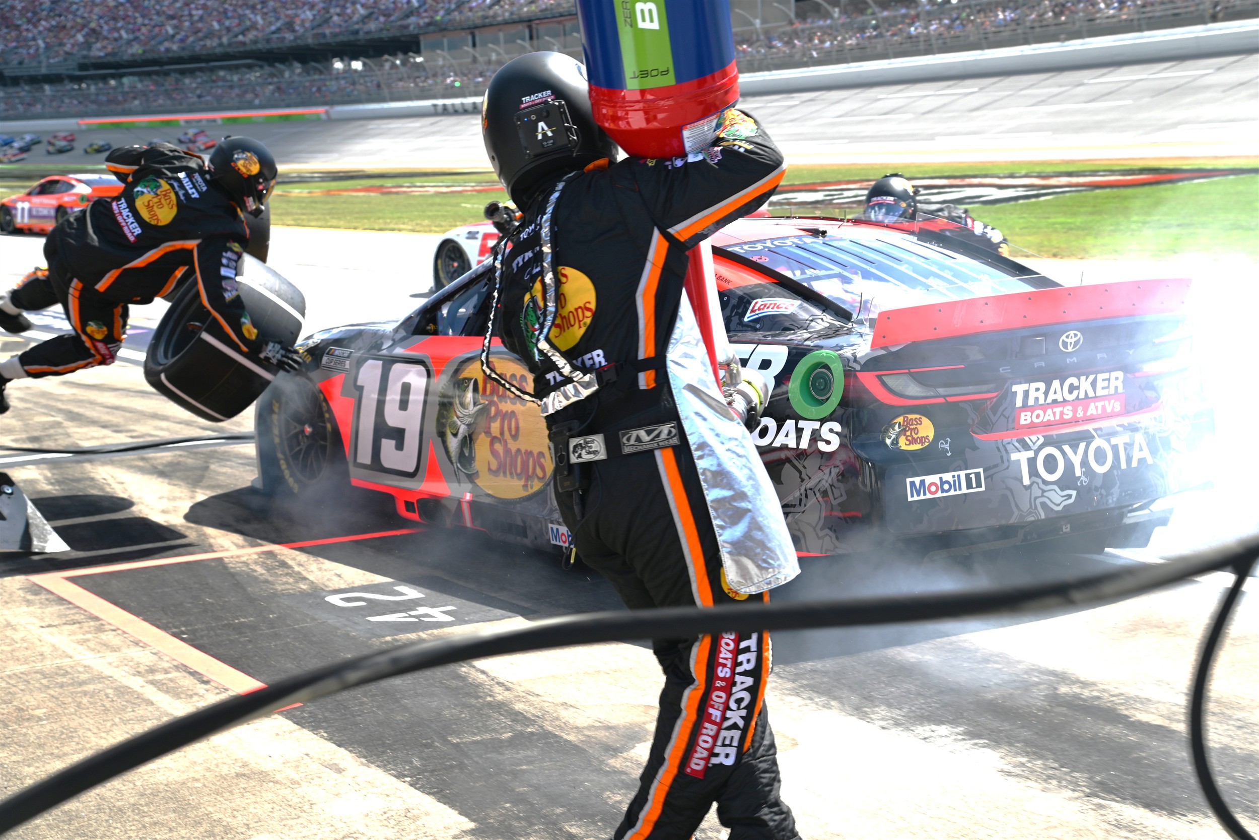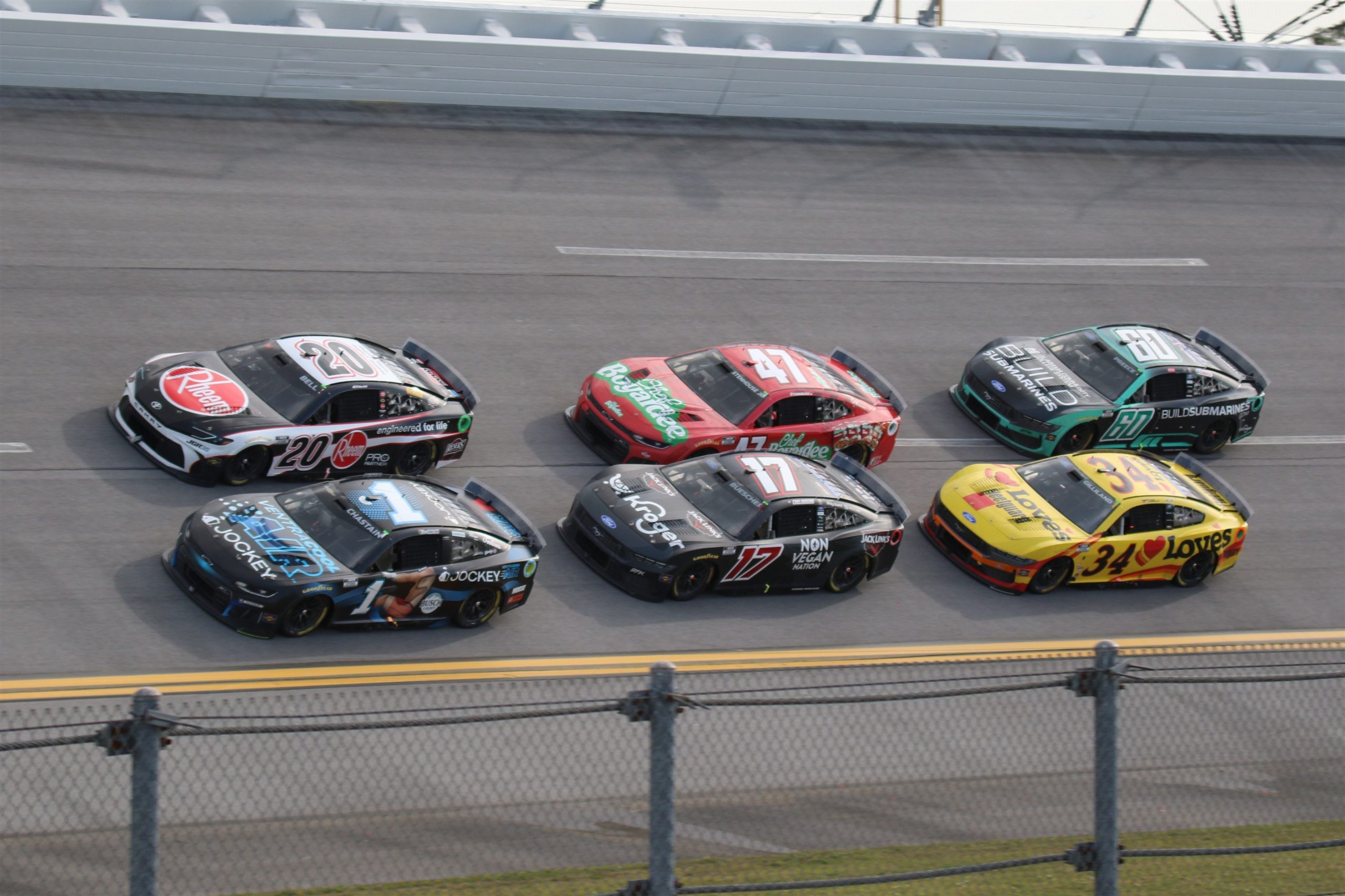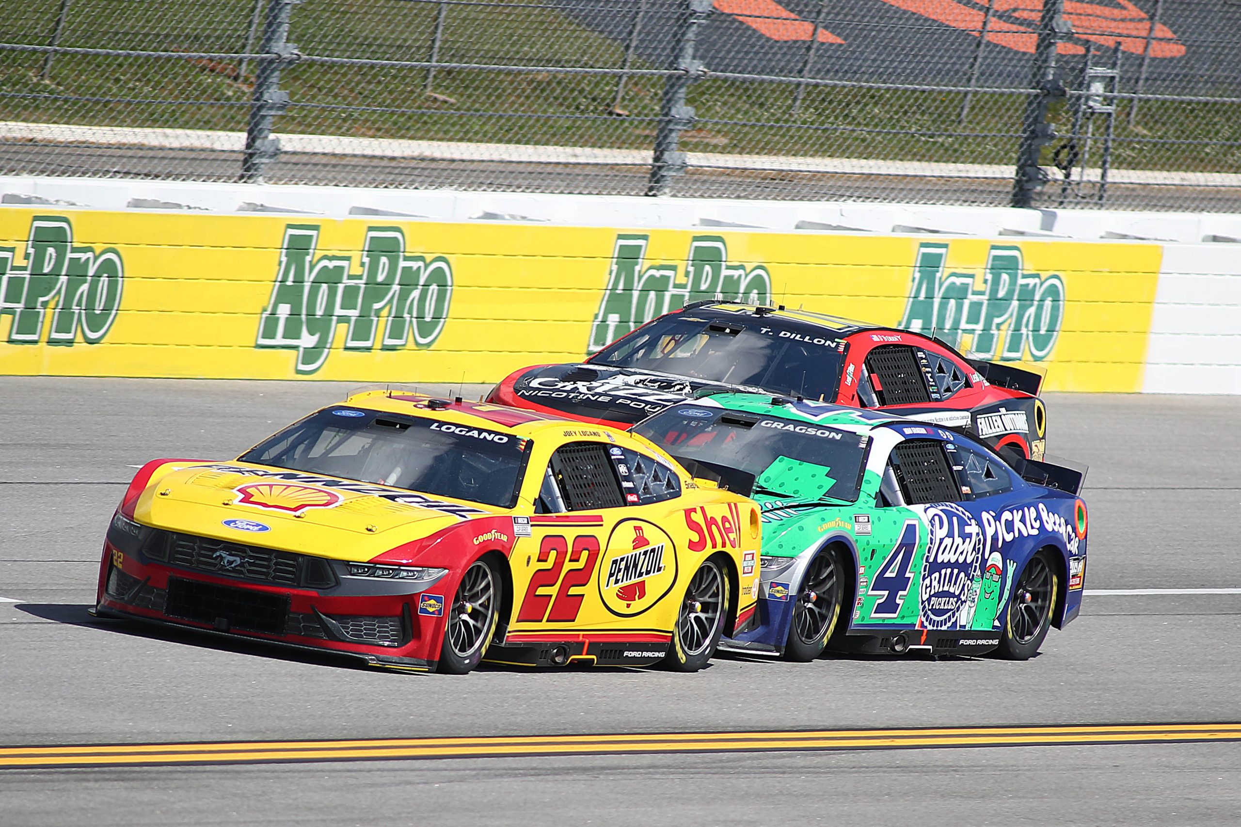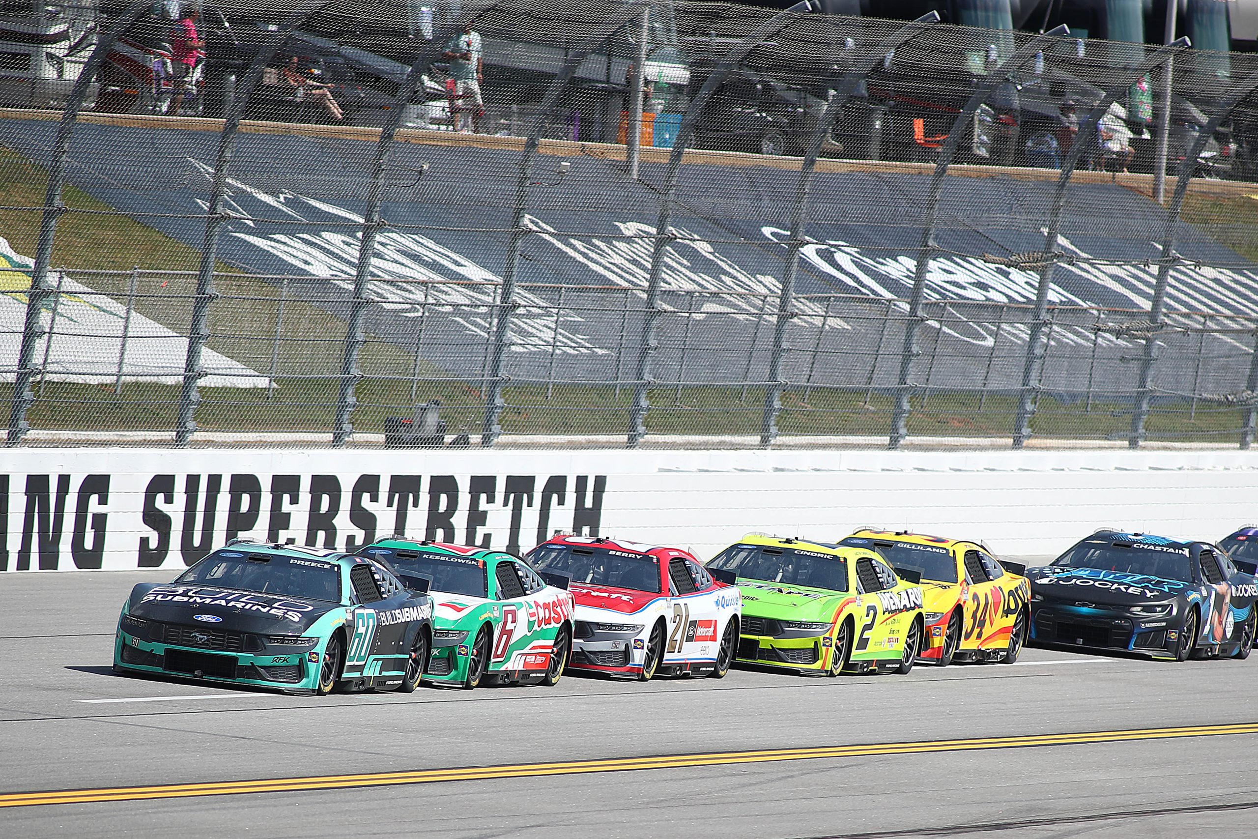 Legendary Racetrack!The Talladega Big Rig with the Giant American Flag!F-35 Flyover after the National Anthem delights the crowd!Pace-Lap of the Jack Links 500 at Talladega Superspeedway in front of the packed crowd!The pace car is away, signaling the start of the race as No. 45 Tyler Reddick leads from the pole position!It’s a full house at Talladega at the start of the race!The field makes their way through the Tri-Oval at the start of the race!Green Flag and the start of the race!Jesse Love driving the No. 33 Richard Childress Racing ChevroletHamlin leads the first lap down the Alabama Gang Superstretch as Reddick begins to fall back.No. 45 Tyler Reddick is off the pace and falling back.From Lap 4-10 No. 3 Austin Dillion, No. 19 Chase Briscoe and No. 11 Denny Hamlin take turns leading the field.No. 45 Tyler Reddick falls back as he reports intermittent engine firing.Reddick continues to fall back to P23 as Hamlin leads.On Lap 10 No. 66 Chad Finchum leads for the first time in his NASCAR career.Chad Finchum leads as Hamlin, Briscoe, Gibbs and Nemechek give chase at full throttle.Laps 10-20 as Finchum, Hamlin and Briscoe opt for speed vs. a fuel saving strategy.Joey Gase goes a lap down on lap # 40.Lap 42 Chase Briscoe pits but comes in hot into the first pit stall off Turn 4 as he locks up the brakes!Chase Briscoe slides through his pit box, right into the path of tire-changer CJ Bailey!CJ Bailey goes flying as the No. 19 Toyota makes contact with him!Chaos ensues in the No. 19 pit box as his crew member & tires go flying and the fuel man gives chase!Briscoe slams it into reverse and gets wrapped up in his air hose!The misstep by Briscoe was an immediate safety violation that penalized the team on the costly pit stop. CJ Bailey was reportedly unhurt in the incident, but the 2025 Yellawood 500 winner hopes for a repeat Talladega victory were dashed.Riley Herbst had a rough day at Talladega, with two pit road speeding penalties and one for advancing his position below the yellow line.No. 34 Todd Gilliland leads Joey Logano through Turn 4.It’s Shane Van Gisbergen and Ross Chastain leading Erik Jones, Austin Dillon and Ricky Stenhouse, Jr. down the backstretch!Shane Van Gisbergen heads to the Tri-Oval.Fords to the Front as Preece leads Buescher, Keselowski, Logano and Blaney.Brad Keselowski out of Turn 4 headed for the Tri-Oval.Late in Stage One, stage winner No. 60 Ryan Preece Leads.Christopher Bell pits.Daniel Suarez pits.Ricky Stenhouse, Jr. pits.Carson Hocevar’s pit stop.Austin Cindric hits the pits.Pit road is open and leaders are in. No. 23 Bubba Wallace takes only two tires.No. 77 Carson Hocevar, William Byron, Shane Van Gisbergen, Chase Elliott, Alex Bowman and Ricky Stenhouse, Jr. off pit road.Ty Gibbs, John Hunter Nemechek and Kyle Busch exit pit road.2022 Talladega Winner, Ross Chastain.2025 Jack Links 500 Winner, Austin Cindric.2021 Talladega Winner, Chase Elliott.On Lap # 114, Logano leads the three wide field towards Turn 2.No. 22 Joey Logano leads Noah Gragson and Ty Dillon into Turn 3 at the Alabama Superspeedway.Bubba Wallace leads Ross Chastain, Cole Custer and Brad Keselowski out of Turn One.Bubba Wallace leads the field towards Turn Two.It’s No. 23 Bubba Wallace, Joey Logano, Ross Chastain & Ryan Blaney down the backstretch.Bubba Wallace leads through Turn 3.Bubba Wallace leads through Turn 4.Bubba Wallace leads Ross Chastain down the Alabama Gang Superstretch.
