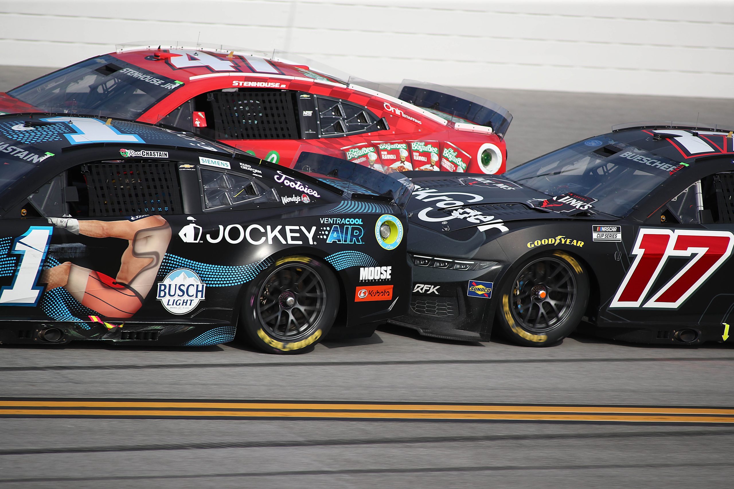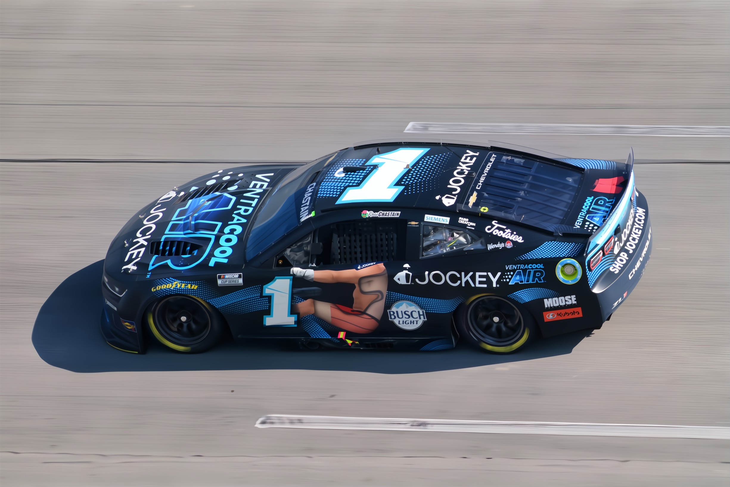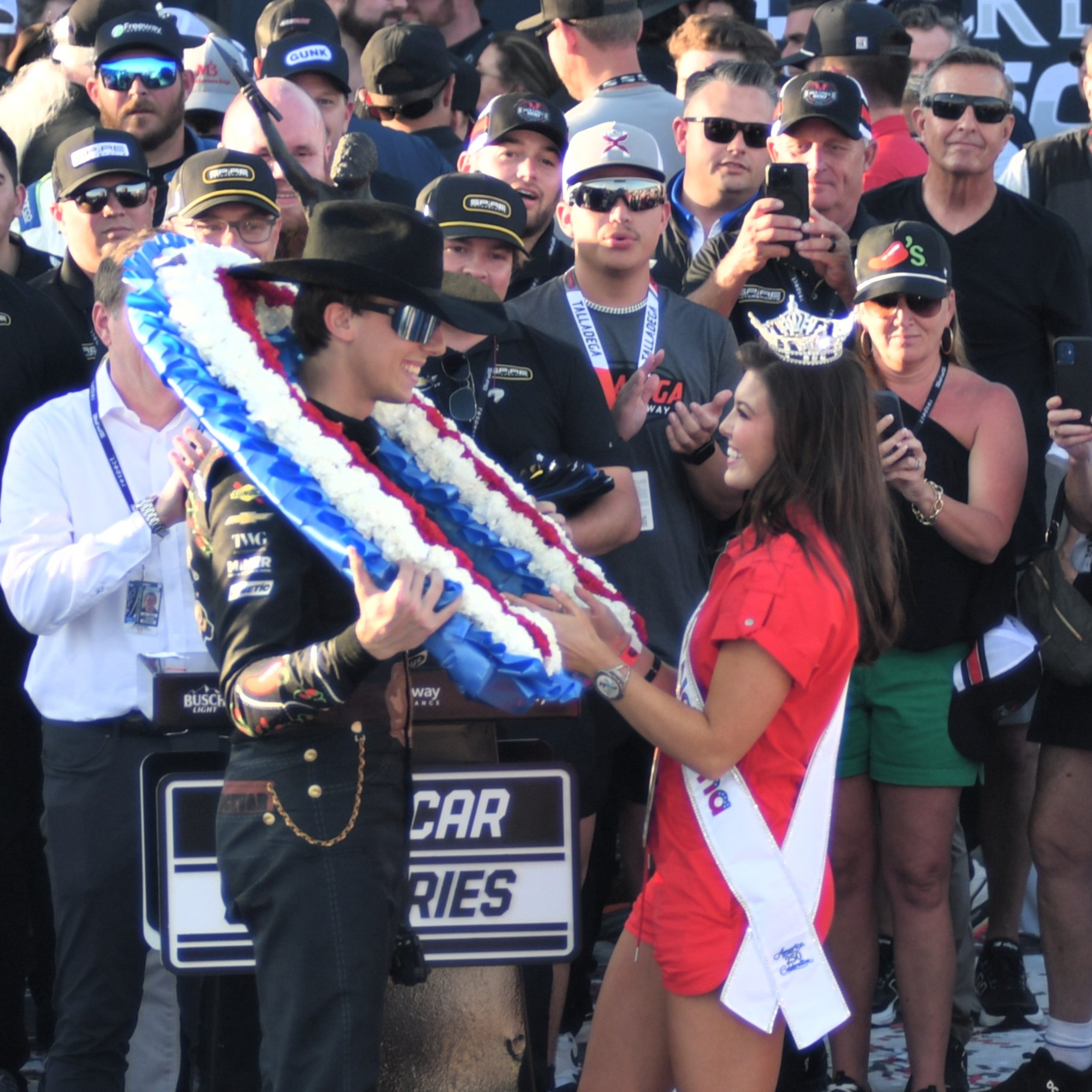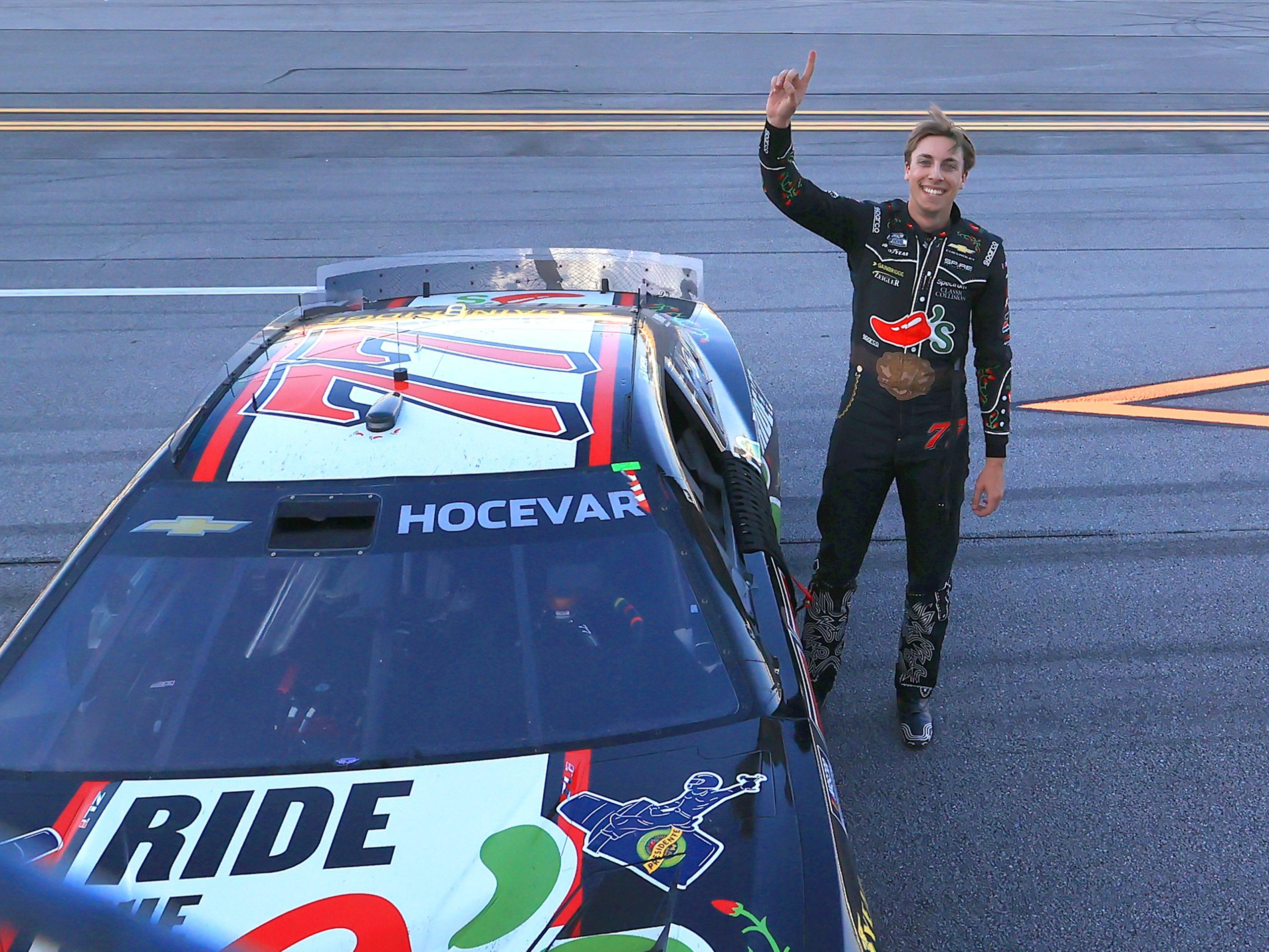 After dueling Chris Buescher with a last lap pass Sunday, Hocevar celebrated his first win with one of NASCAR’s most unconventional victory laps while sitting on the window of his Chevrolet, saluting the crowd with fist pumps and waves while driving the length of the frontstretch on the window of his race car. It was an absolutely legendary move that will be talked about for many years to come.