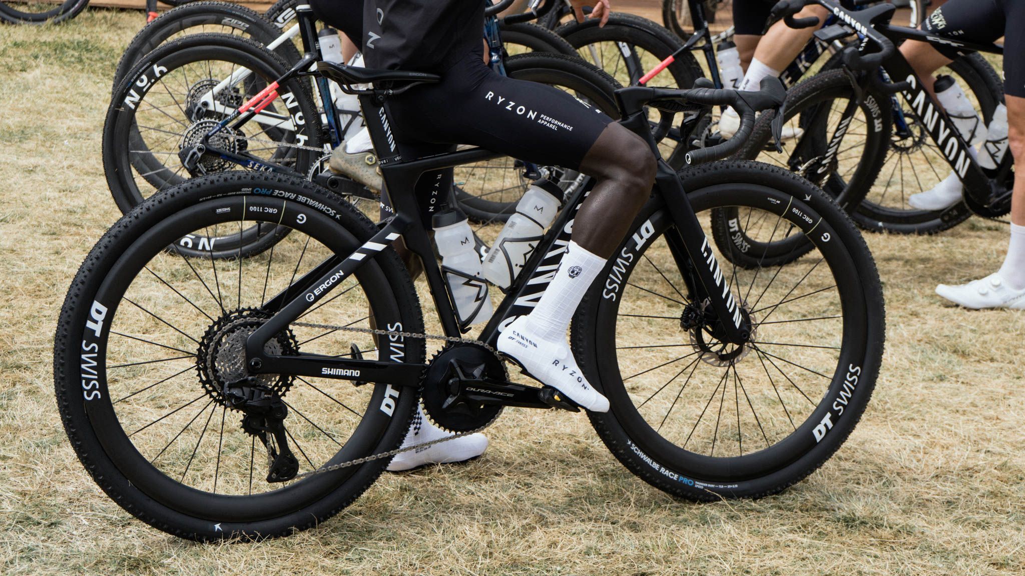 We have also spotted a new hyper-aggressive Ridley gravel bike today, as competitors ready their bikes for the weekend’s racing.