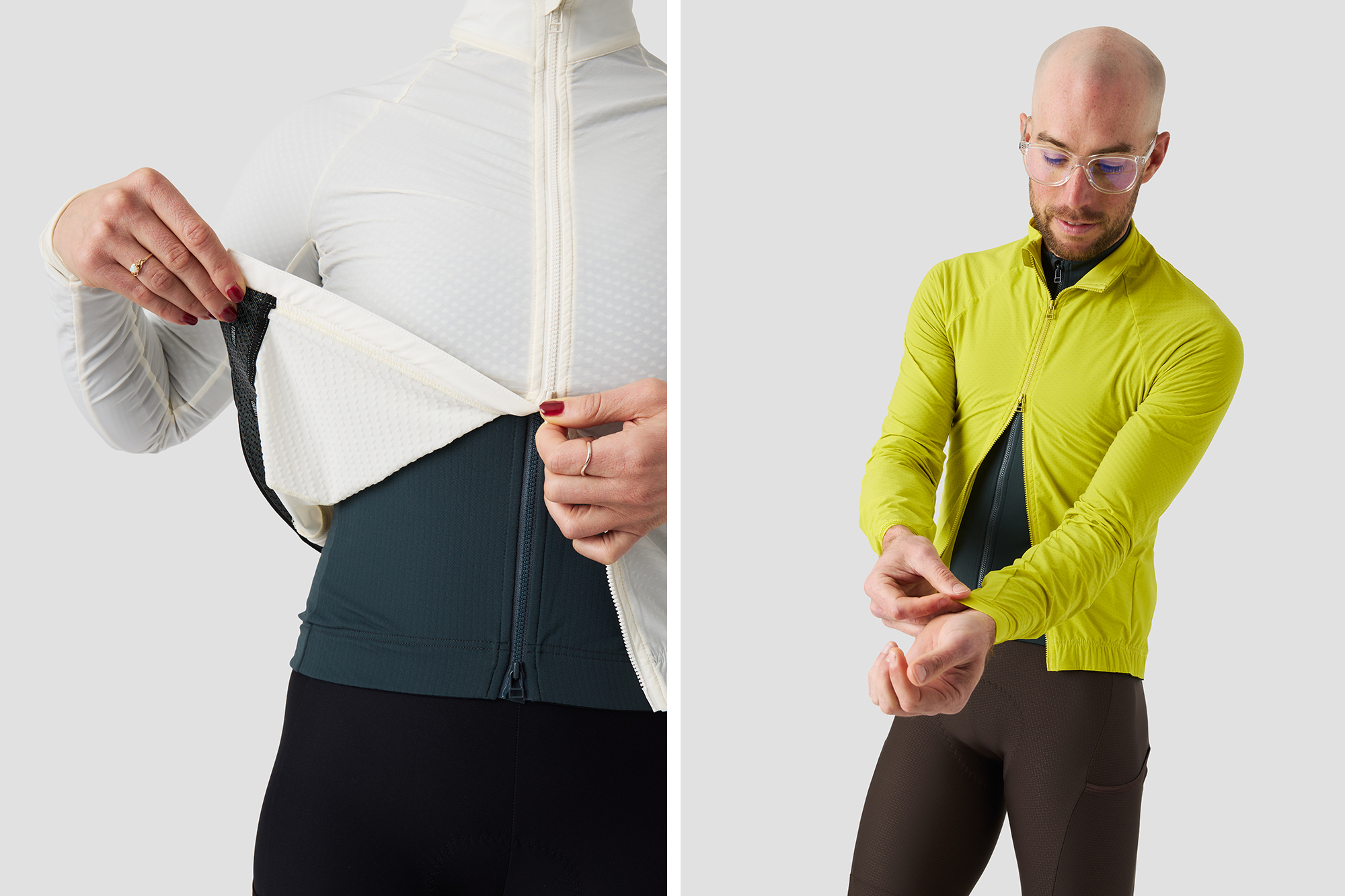 The Micro Climate Jacket sheds water and packs down neatly into its rear pocket for easy carry in a jersey pocket or handlebar bag. The 2-way YKK zipper further increases temperature regulation, making this a go-to layer for cooler rides.