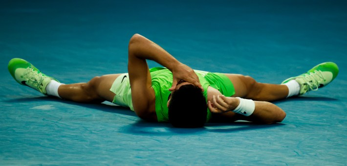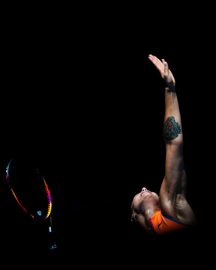 I want the viewers of my images to perceive the solitude and vulnerability of a player fighting for themselves on the court, accompanied by bold colors and angles that signal that the images are likely taken by me. As I pursue sports photography more consistently, I find the need to concretely establish my style in the field, and I’m grateful that both Racquet and AO offered me the platform to play around and come closer to understanding my priorities when capturing a game.