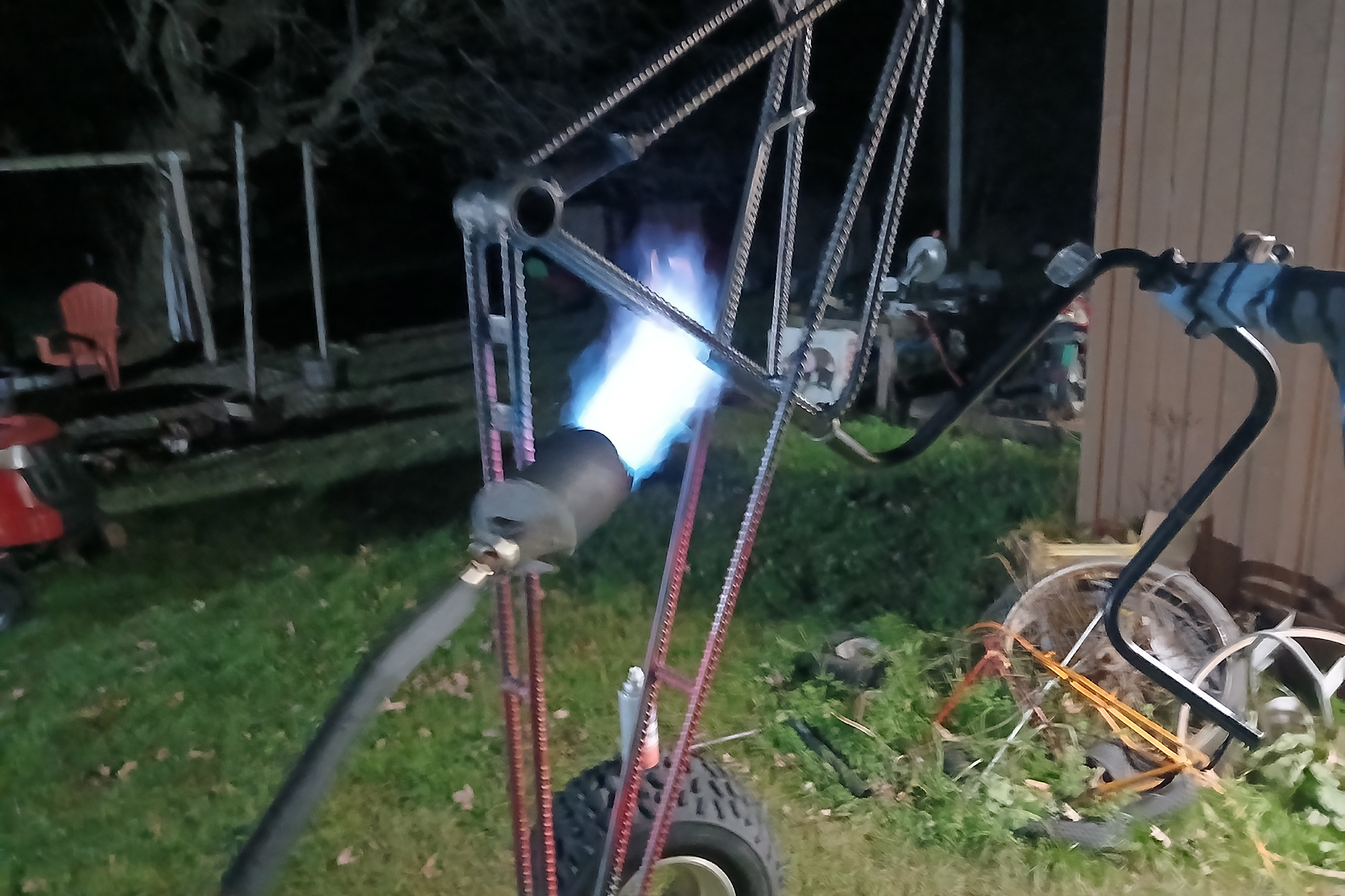 Total build weight, as shown in the pictures, is 38 pounds (17kg). It’s no featherweight but not morbidly obese despite using nineteen feet of #4 (½”) rebar.