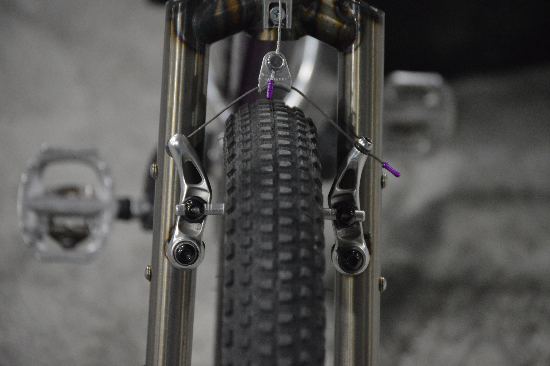 I went for an aggressive “stand n shred” style ride, ideal for adventures around the city and ripping through the bosque. I replaced the original 3×8 drivetrain with a 1×11 piece together Shimano group, and set up a sweet tubeless wheel/tire set that was provided by Will over at Two Wheel Drive here in Albuquerque. These specific rims have a ceramic braking surface, a feature not forgotten by Kool-Stop, their Eagle 2 Ceramic Pads did the job here. This was my first time building with the Edsen Steel Craft fork and I must say for the price it absolutely delivers on a budget!