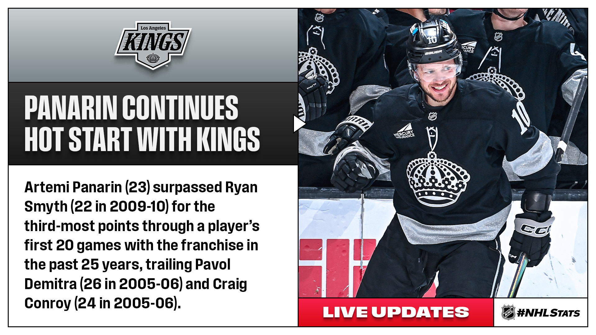 * Adrian Kempe (2-2—4) recorded his fourth career four-point game and Artemi Panarin (1-2—3) added to his totals since joining the Kings to help Los Angeles (31-26-19, 81 points) move into a Wild Card seed, where they stayed for two hours before being overtaken by Nashville. Saturday’s contest featured four combined game-tying goals between the Maple Leafs and Kings and also saw Los Angeles set the NHL record for the most games requiring overtime in a single season (31 GP). The Kings’ next contest is against the Predators on Monday night at Crypto.com Arena.