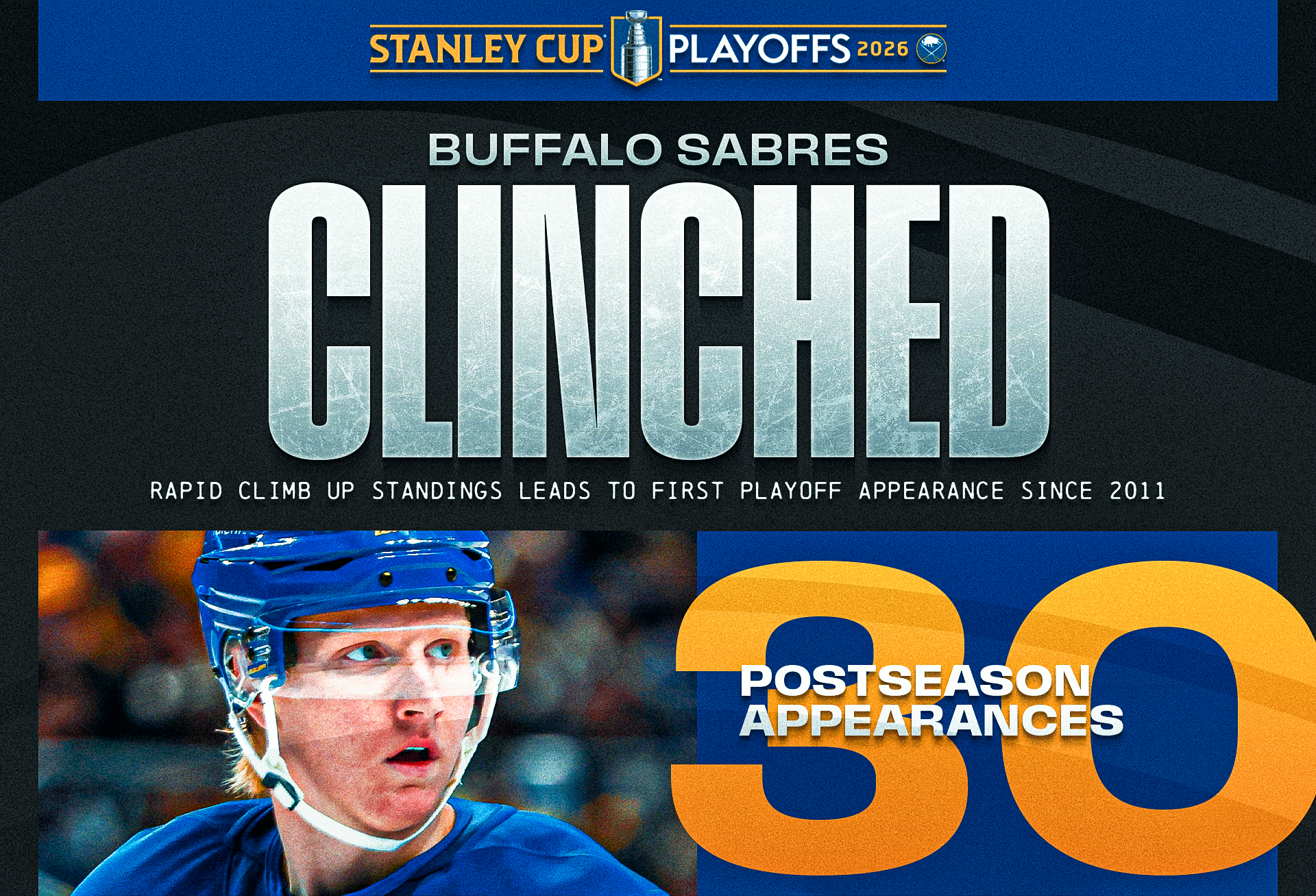 Just a few short hours before they were in action, the Sabres (46-23-8, 100 points) and Lightning (48-22-6, 102 points) both clinched a berth into the 2026 Stanley Cup Playoffs by virtue of the Rangers defeating the Red Wings in regulation. For Buffalo, the clinch marked an end to the longest postseason drought in NHL history and for Tampa Bay, it meant matching Colorado for the longest active streak of playoff appearances. Now, the teams will continue to battle for a division title.