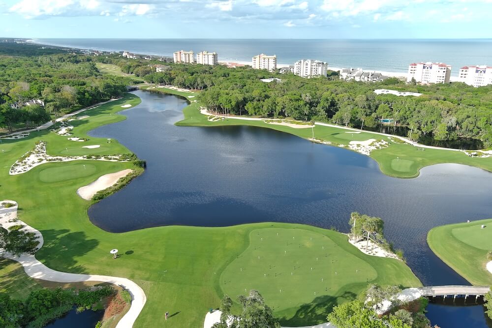 The project also included a bonus on a piece of the former Ocean Links course nearest the resort’s shopping village – an original 10-hole short course and 18-hole putting course designed by Beau Welling. Little Sandy is a rollicking alternative for resort guests and members of the Amelia Island Club, featuring 10 holes ranging from 30 to 125 yards around a central lagoon. Played from the right tee across the water, the sixth hole might even remind you of the 12th at Augusta National.