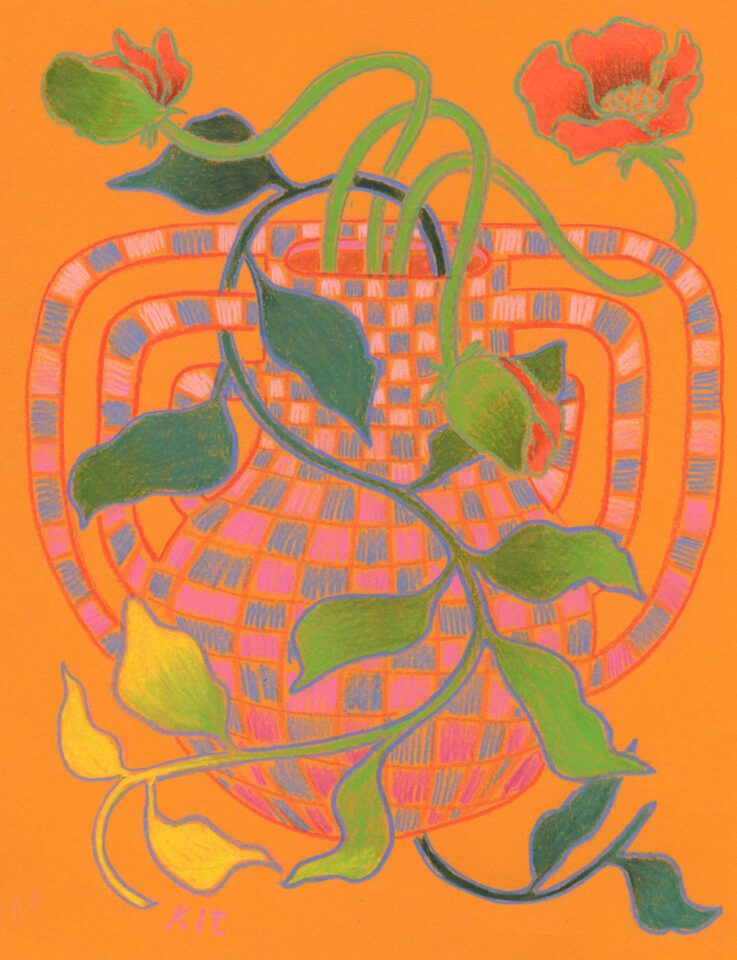 As much as I love art, I’ve found it difficult to maintain a consistent personal studio practice. I go through extended periods of time when I’m not creating anything, followed by hyper-focused creative bursts. For many years, I worked a non-creative computer job and, after sitting at a desk all day, I wasn’t motivated to do more of the same after work. In 2016, I discovered rock climbing and spent most of my time at the gym or camping in Arkansas for an impromptu climbing weekend. I’m not sure whether there’s a connection or just a coincidence, but my drawings seemed to reflect my renewed love of the outdoors, and I began incorporating more organic elements, like flowers and plants, into my pieces.