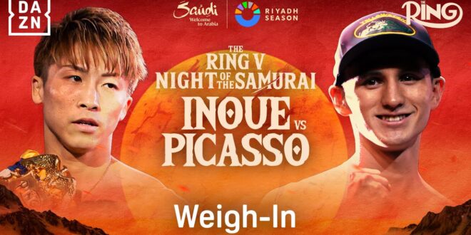 December 26, 2025 — Ring V: Night of the Samurai | Naoya Inoue vs. Alan Picasso weigh in live from Riyadh, Saudi Arabia.