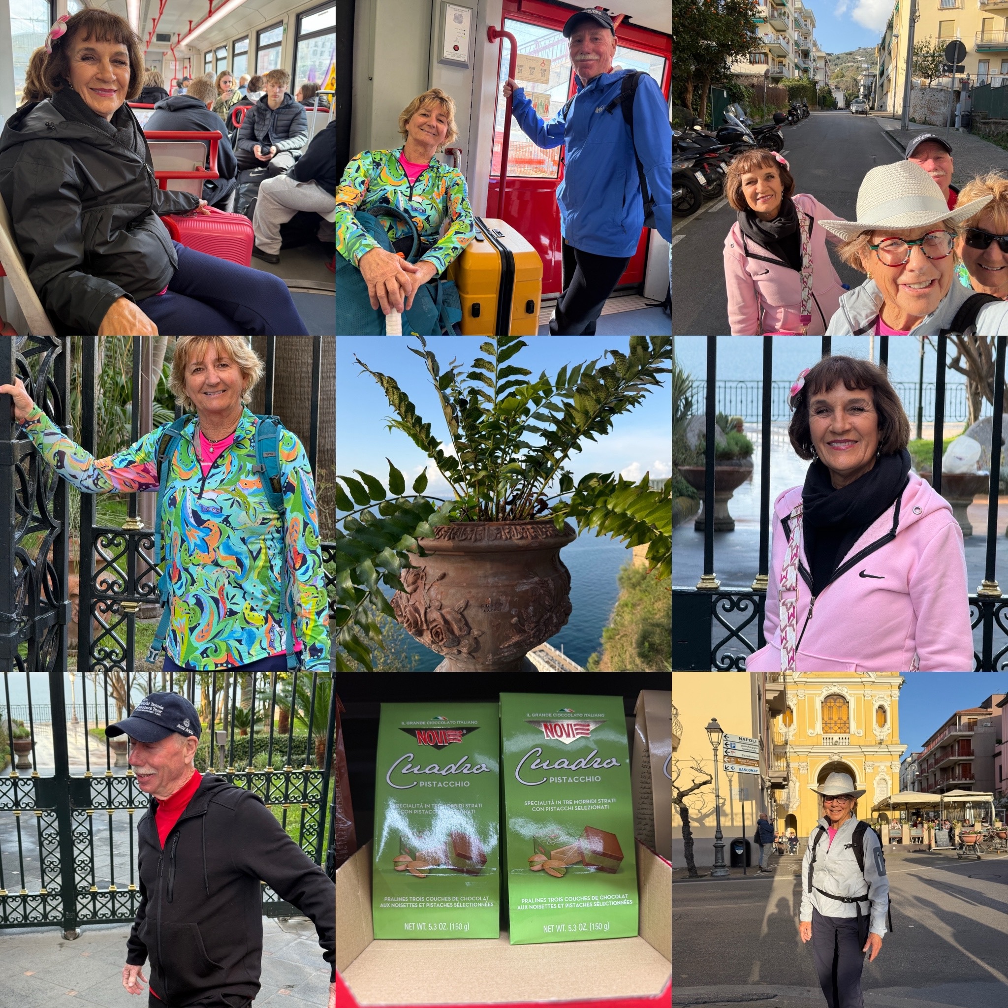 Thursday Susan, Tim, Tracey and I left Rome and traveled to Sorrento. Susan and I had found a place to leave our two big suitcases, and it was a good thing we had done our homework because we would not have found our spot easily otherwise in the rain. I had ordered a taxi via the “Freenow” app which was great (owned by Lyft). I ordered and XL taxi and it was just big enough for all our luggage.