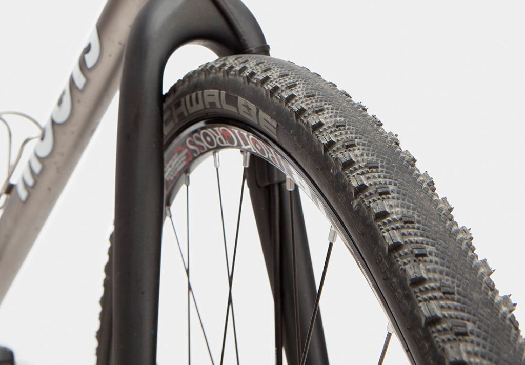 That’s a completely new approach to making semi-slick tires. It shows on the road: These tires grip tenaciously on loose and muddy surfaces, yet they roll and corner like slicks on pavement. We’re not the only ones who think so: Our friends and fellow ‘semi-slick skeptics’ at OPEN Cycles share our enthusiasm. Above is the bike of Andy Kessler (who co-owns the company with Gerard). He’s running our 700×44 Corkscrew Climb semi-slicks. His comment: “Best tyre I have ever ridden.”