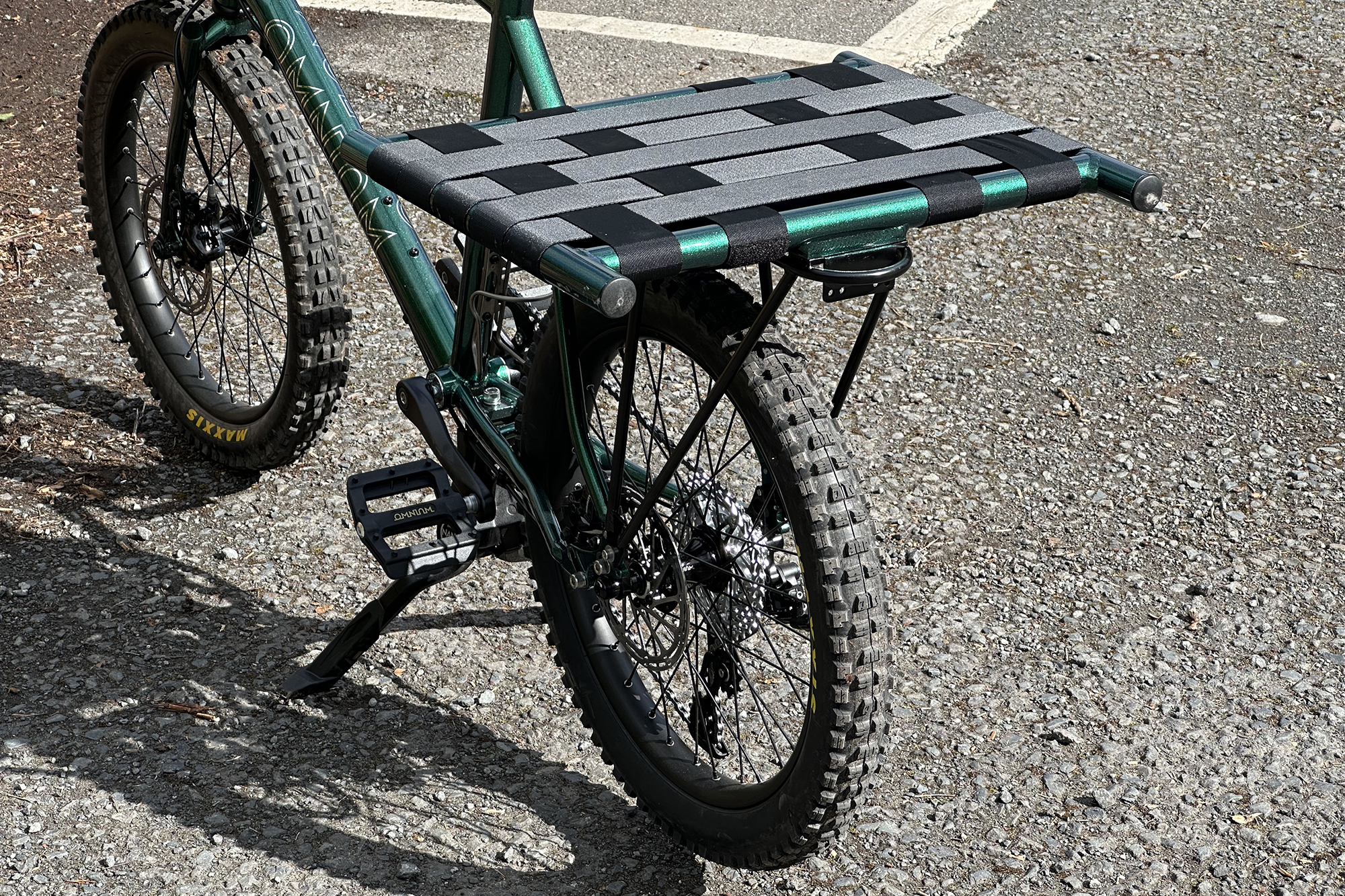 There is a big void of space over the rear wheel created by shrinking it down to 20,” and ever since we saw the first image of this bike, we knew what needed to happen the instant we got our grubby hands on one. Racsimile is a steel pannier rack that can hold an Omnium Nano platform over the rear wheel, at the same height as the front rack, which doubles your carrying capacity and opens up a whole world of new carrying possibilities. You can sling a paddleboard on the sides for example. No other cargo bike in our possession is capable of carrying a paddleboard sensibly…