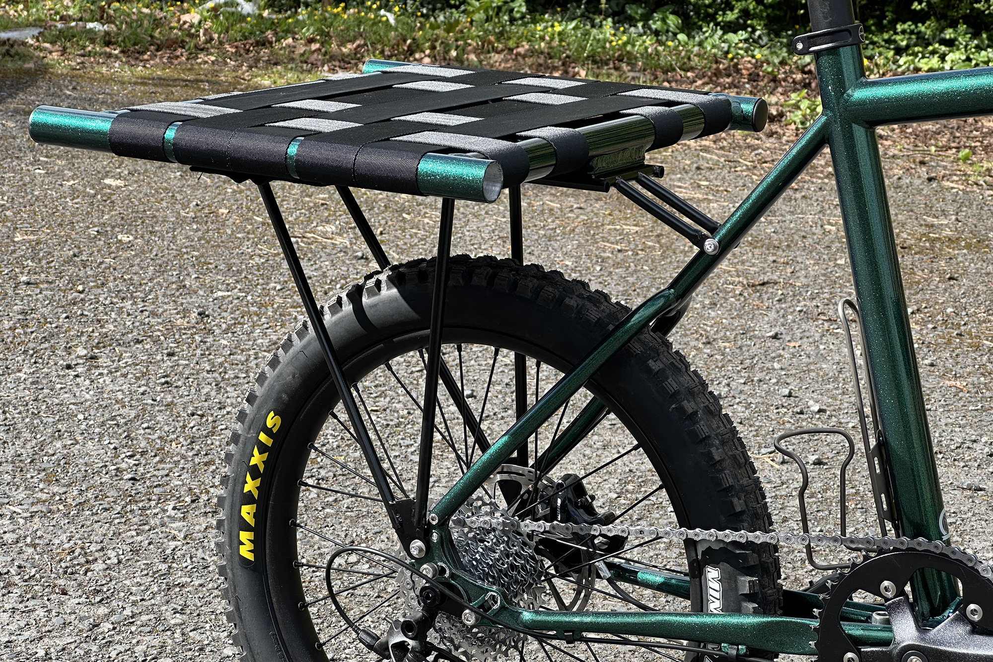 Being tinkerers, we had to make a few changes, of course. We focused on making it more functional rather than just throwing a Chris King headset on it for the gram, and the changes were few. Knobblies went on first. We live in a muddy heaven (or hell, depending on who you ask), so they are a necessity. Some Maxxis Minion tyres fit well enough with some adjustments and work wonderfully, while giving the bike the Tonka Toy aesthetic we enjoy. Next we added a dropper post, we just used the Omnium dropper because the frame doesn’t have routing for a remote dropper, and honestly doesn’t need it. What we felt the bike does need, however, is a rear rack, so we got busy fabricating one.